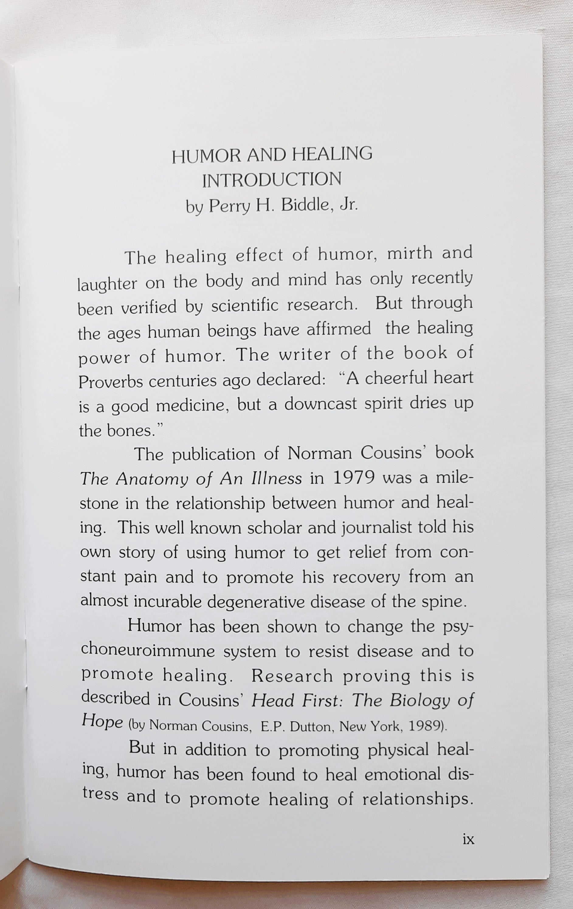 Humor & Healing by Perry Biddle (Good, 1996, Pbk, Desert Ministries, 42 pages)