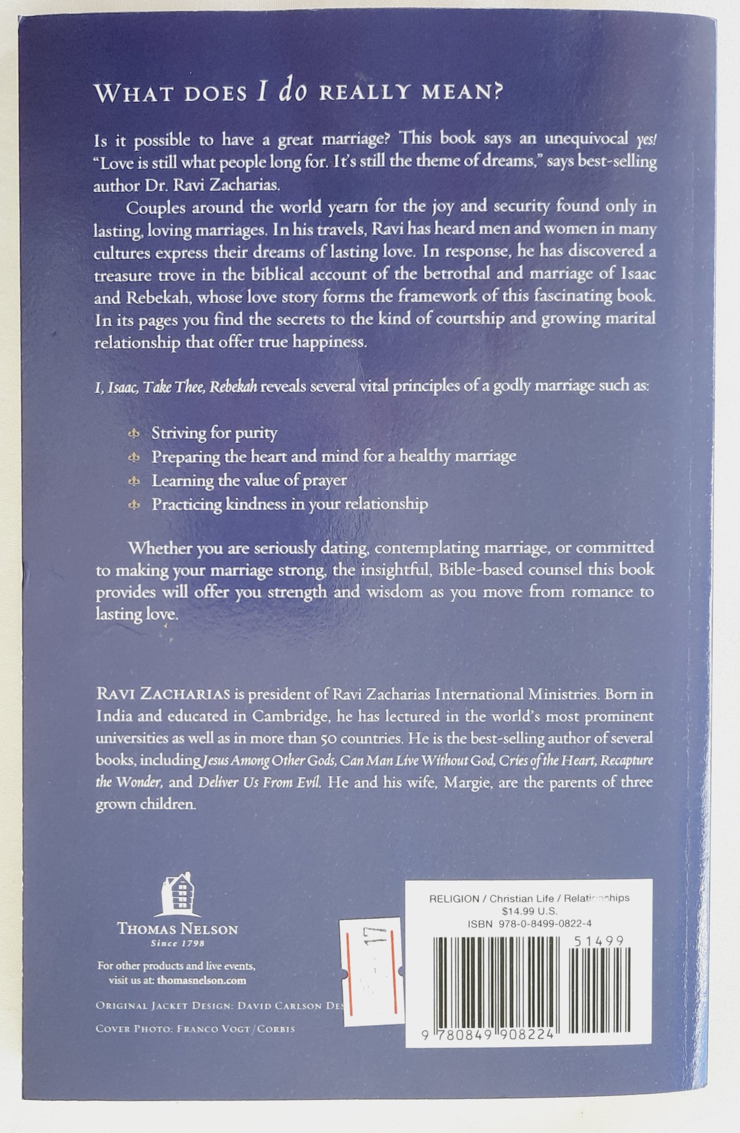 I, Isaac, take Thee Rebekah: Moving from Romance to Lasting Love by Ravi Zacharias (Very Good, 2004, Pbk, 159 pages, Thomas Nelson)