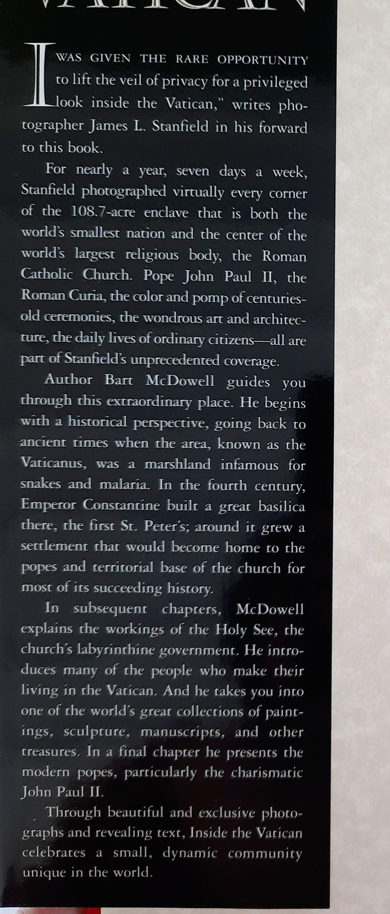 National Geographic: Inside the Vatican by Bart McDowell; James L. Stanfield (Very good, 1991, HC, 232 pages)