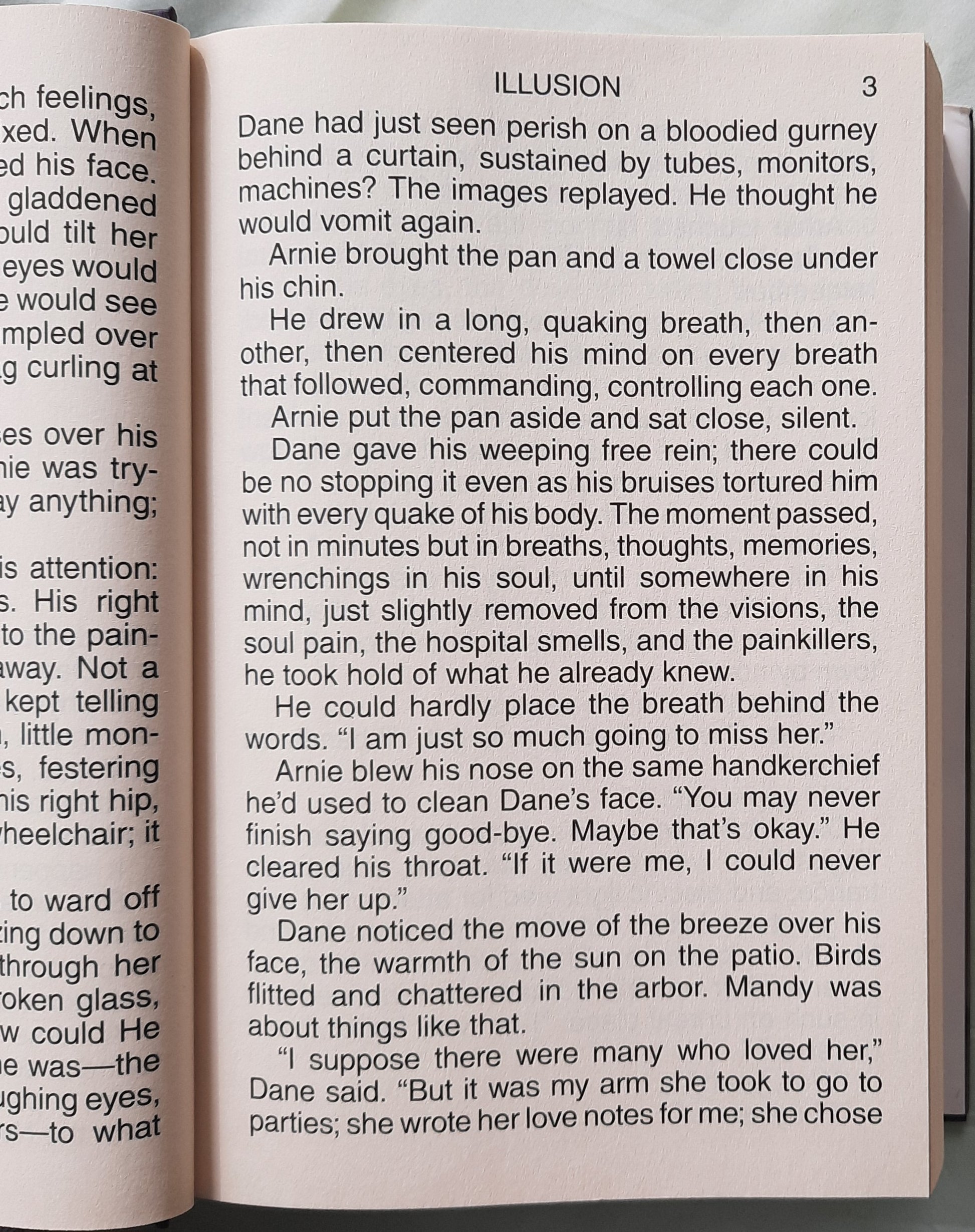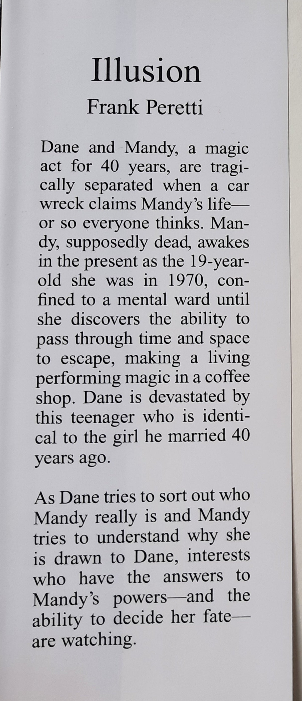 Frank Peretti has crafted a rich, rewarding story of love and life, loss and restoration, full of twists and mystery. Exceptionally well written, Illusion is another Peretti classic.