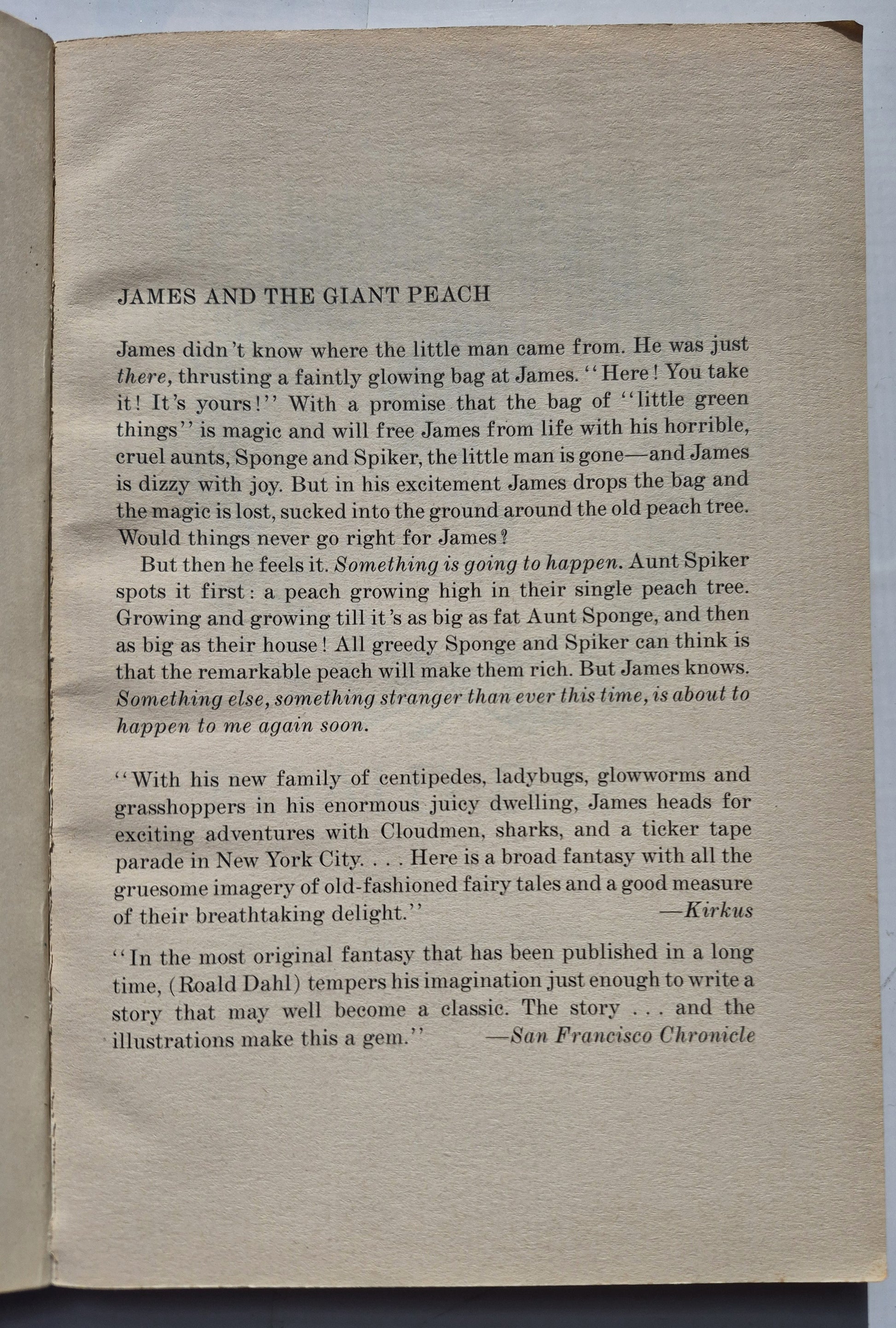 James and the Giant Peach by Roald Dahl (Very good, 1988, Pbk, 120 pages, Puffin Books)