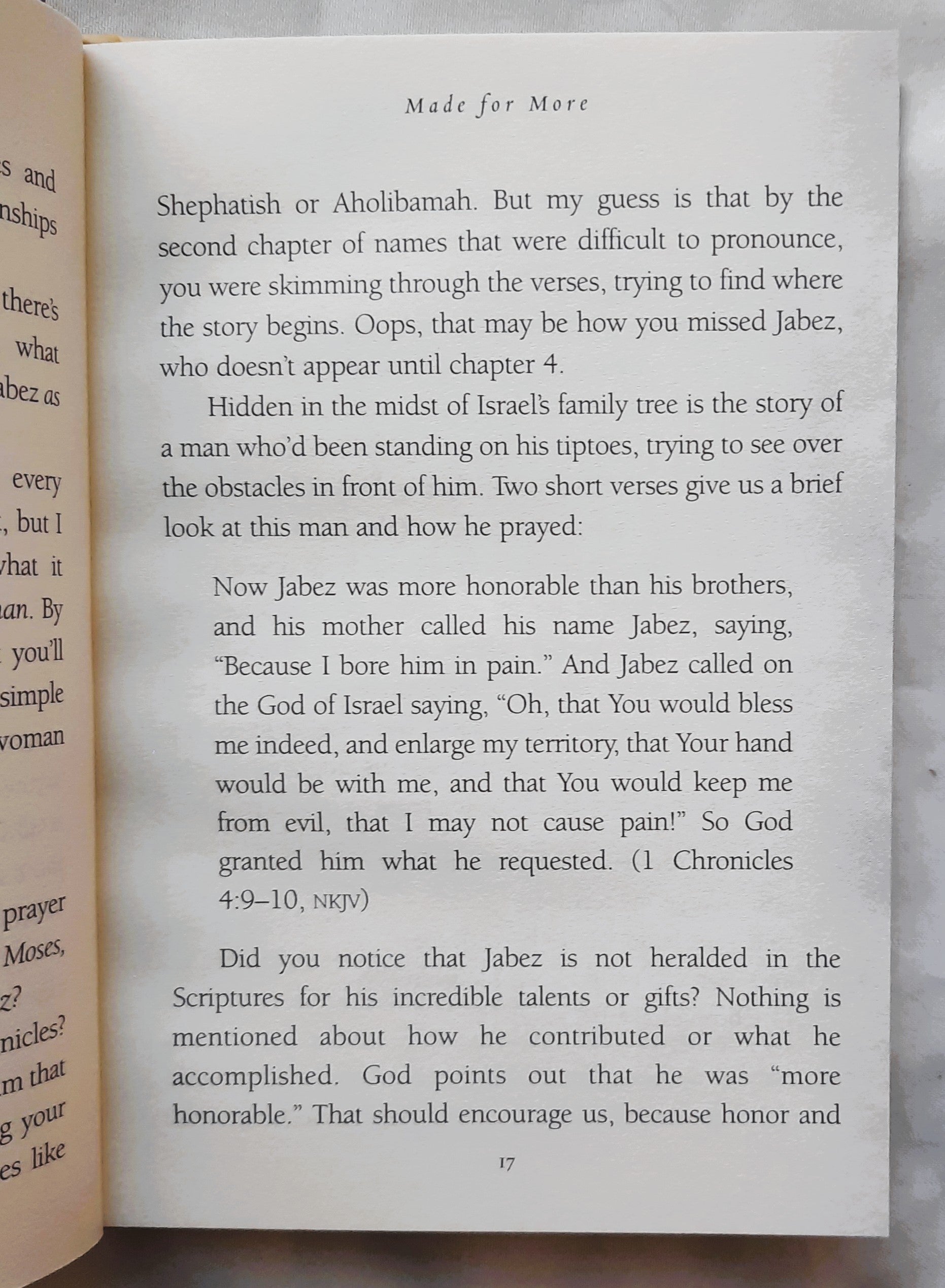 A must-read for every woman, whether she has read The Prayer of Jabez or not, this book addresses important questions such as, how can a busy mom expand her territory without neglecting the most important territory she already has, her family?