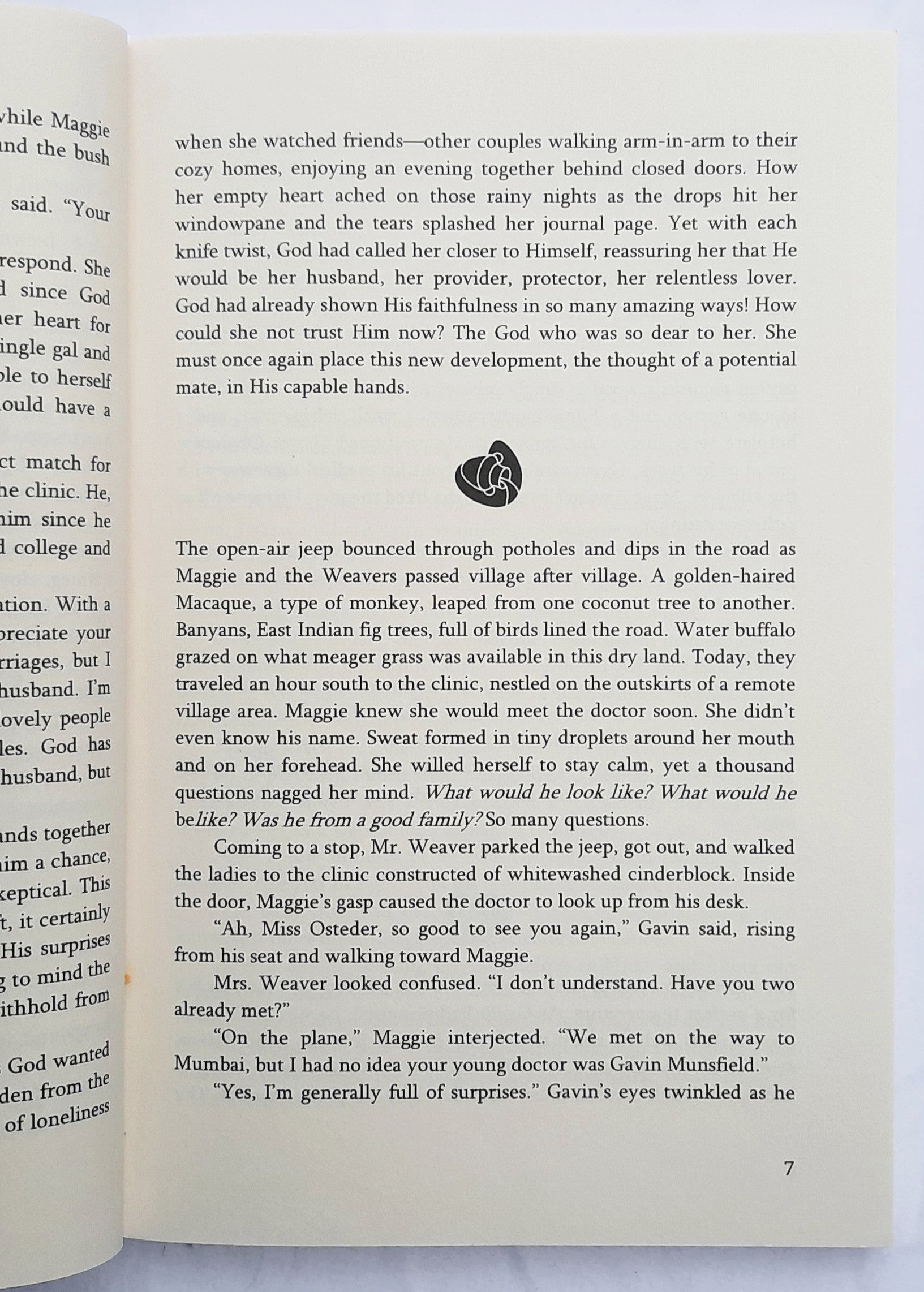 'Don't lose heart. Stay focused on serving, and God will take care of the rest,' her mother always tells her. Yet upon arrival in Chennai, a fellow missionary makes a comment that strikes to Maggie's heart-that her ministry will be more effective if she's married. And her newfound friend says she has the perfect match: the new doctor, Gavin Munsfield.
