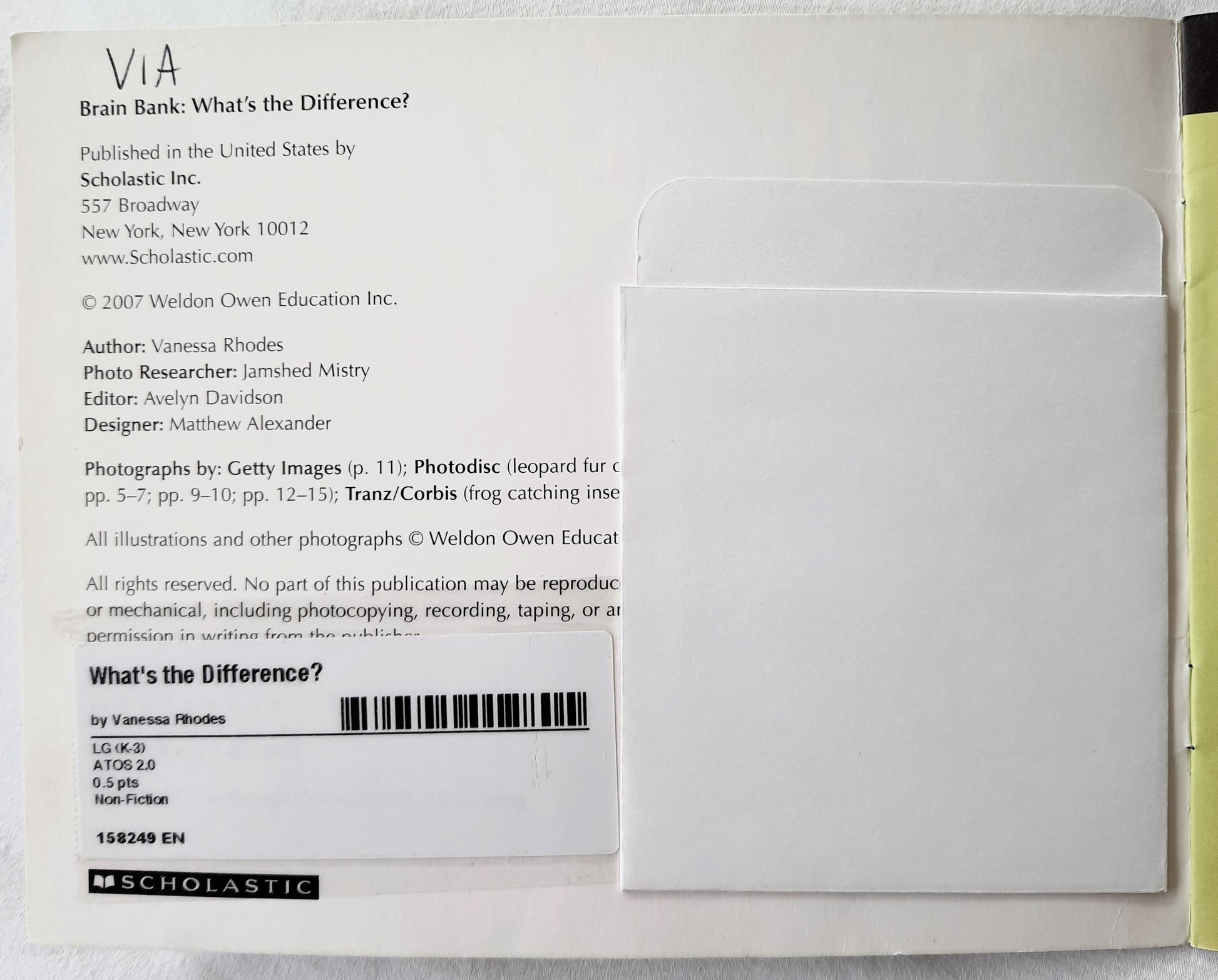 What's the Difference by Vanessa Rhodes (Very good, 2007, Pbk, 16 pages, Scholastic)