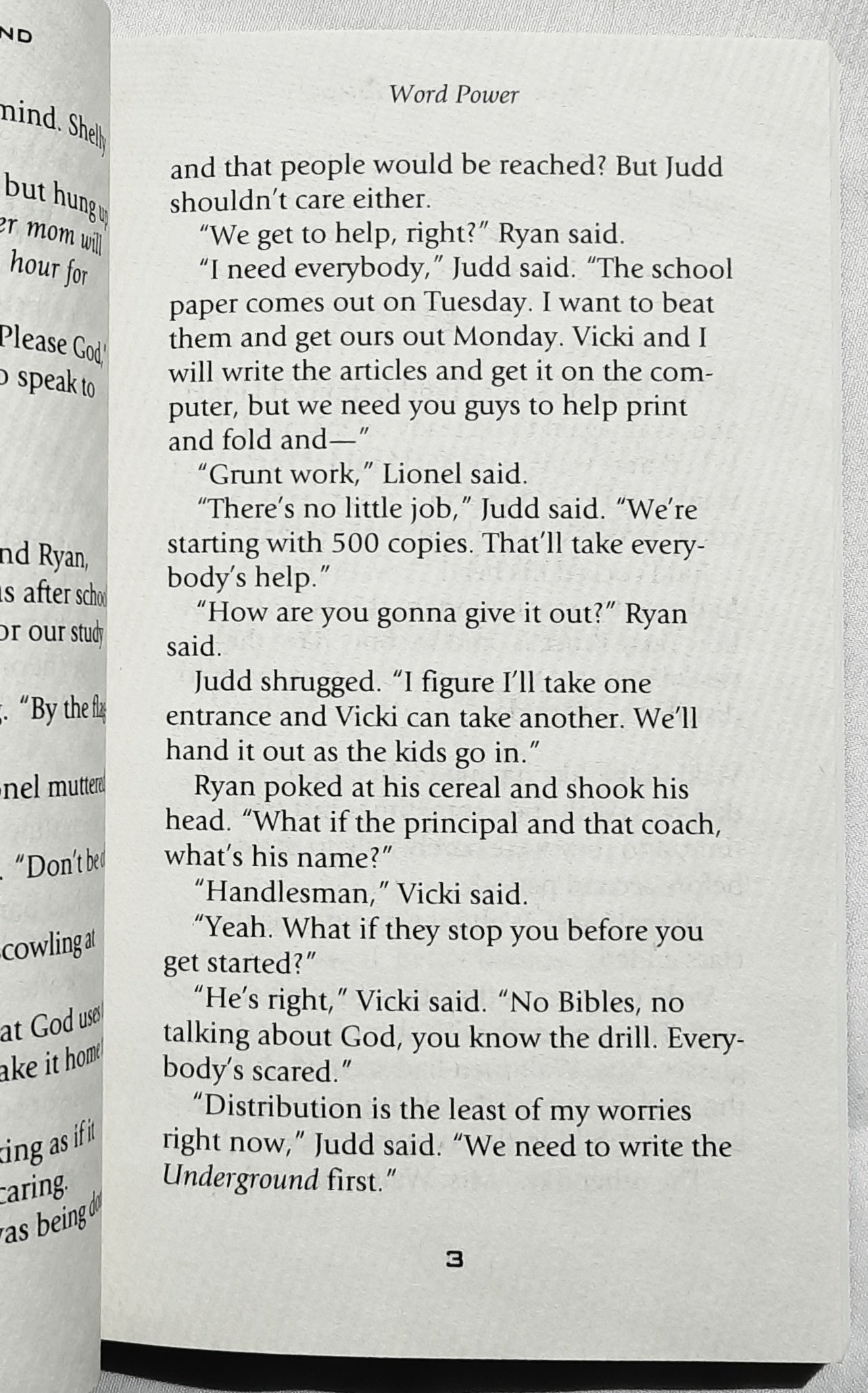 Book six in the Left Behind: The Kids series, The Underground shares its title with the Young Trib Force's secret school newspaper, preaching the true story of the Rapture and the Tribulation to the left-behind students of Nicolae Carpathia High. Judd, Vicki, Lionel, and Ryan all pitch in to make the paper happen, despite pressure from Carpathia's faculty and even a mysterious, possibly demonic hard drive crash. But with high-tech help from new friends and the aid of prominent journalist and eyewitness to evil Bruce Williams, the growing group manages to deliver The Underground to almost every student in school. Everything's going well until Global Community heavies get involved--and one of the Trib Force members gets caught because she spread the word of God!