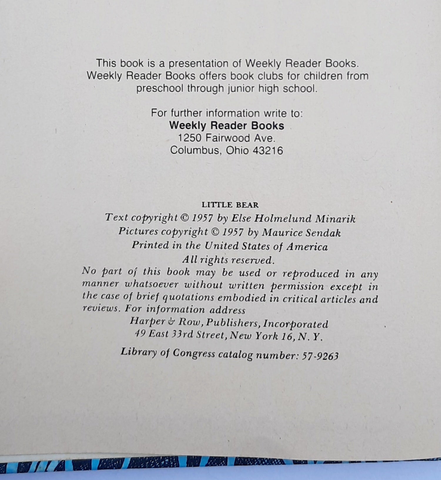 Little Bear by Else Minarik; Maurice Sendak (Good, 1957, HC, 63 pages, Weekly Reader Book, I Can Read)