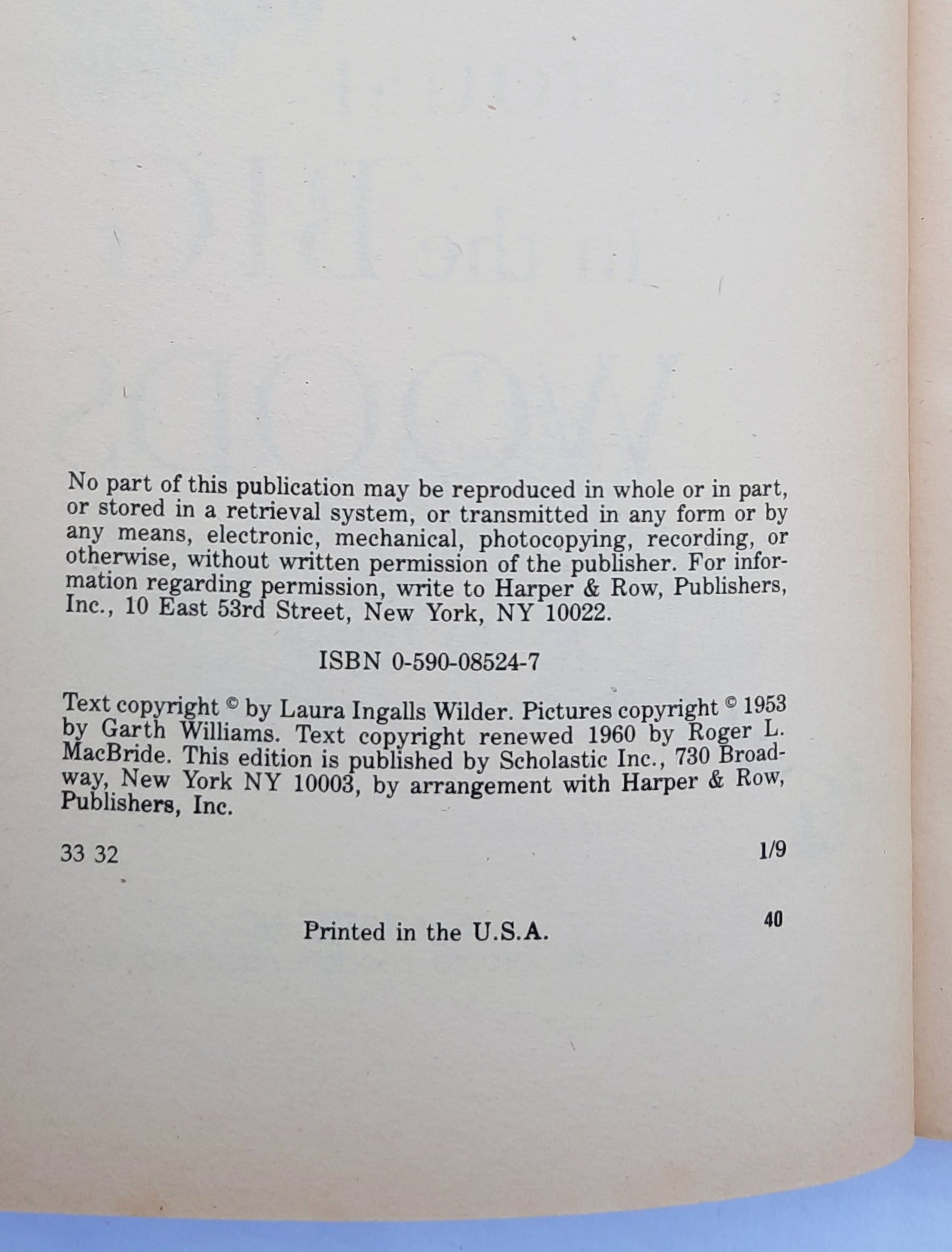 Little House in the Big Woods by Laura Ingalls Wilder; Garth Williams (Good, 1960, Pbk, 238 pages, Scholastic)