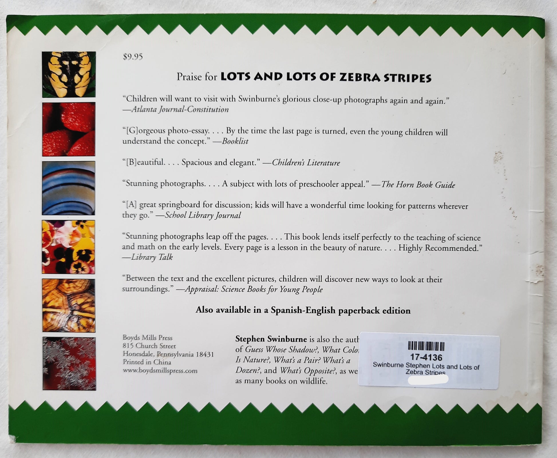 Lots and Lots of Zebra Stripes: Patterns in Nature by Stephen R. Swinburne (Good, 1998, Pbk, 32 pages, Boyds Mills Press)