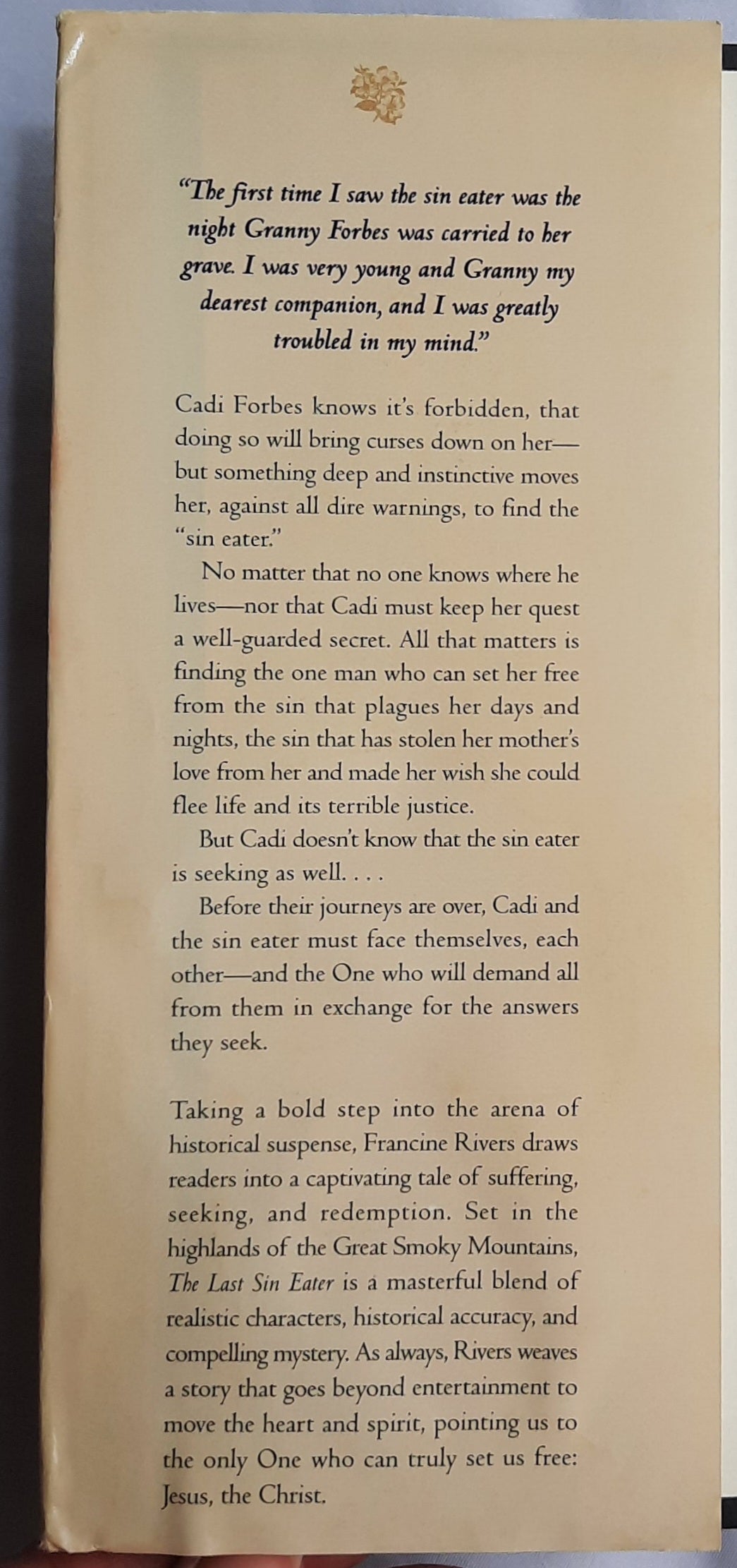 All that matters for young Cadi Forbes is finding the one man who can set her free from the sin that plagues her, the sin that has stolen her mother’s love from her and made Cadi wish she could flee life and its terrible injustice. But Cadi doesn’t know that the sin eater is seeking as well. Before their journeys are over, Cadi and the sin eater must face themselves, each other, and the One who will demand everything from them in exchange for the answers they seek.