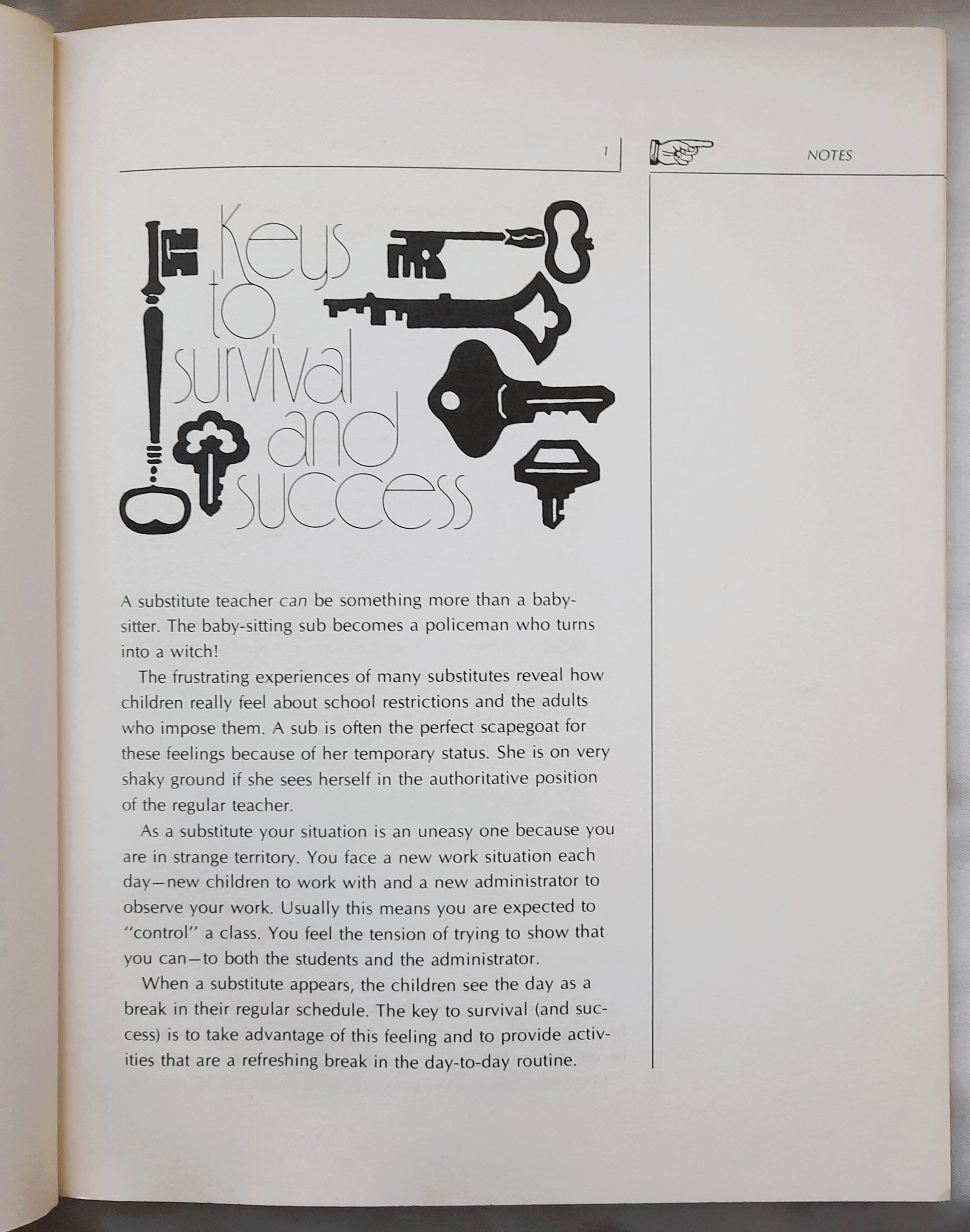 In this unique survival kit two experienced teachers describe a variety of techniques that will help any elementary school substitute do a better and more satisfying job. They offer ingenious suggestions for changing the classroom routine in practical, down-to-earth chapters on: