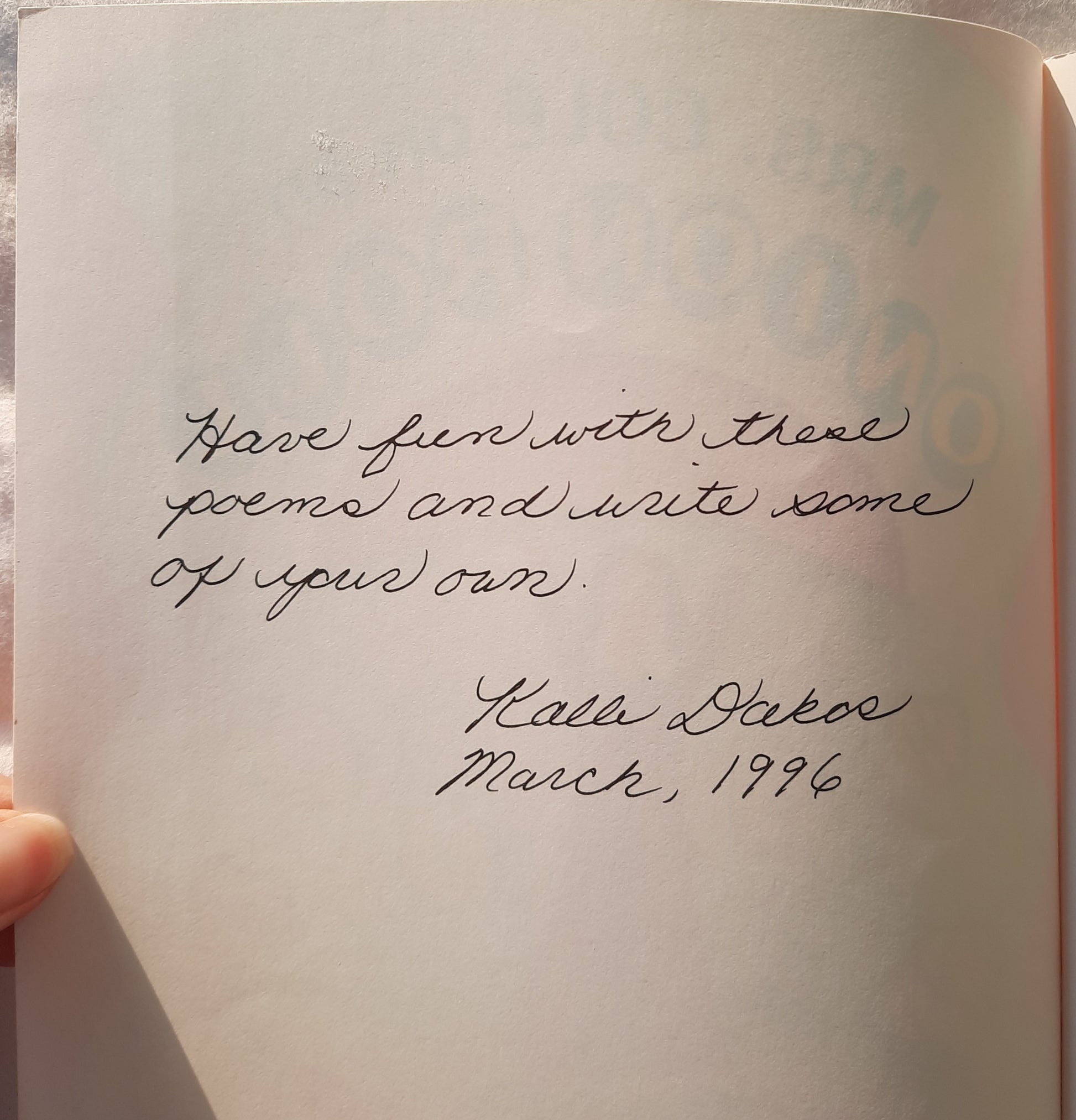 Mrs. Cole on an Onion Roll by Kalli Dakos (Like new, 1995, Pbk,40 pages, Scholastic, Signed by author)