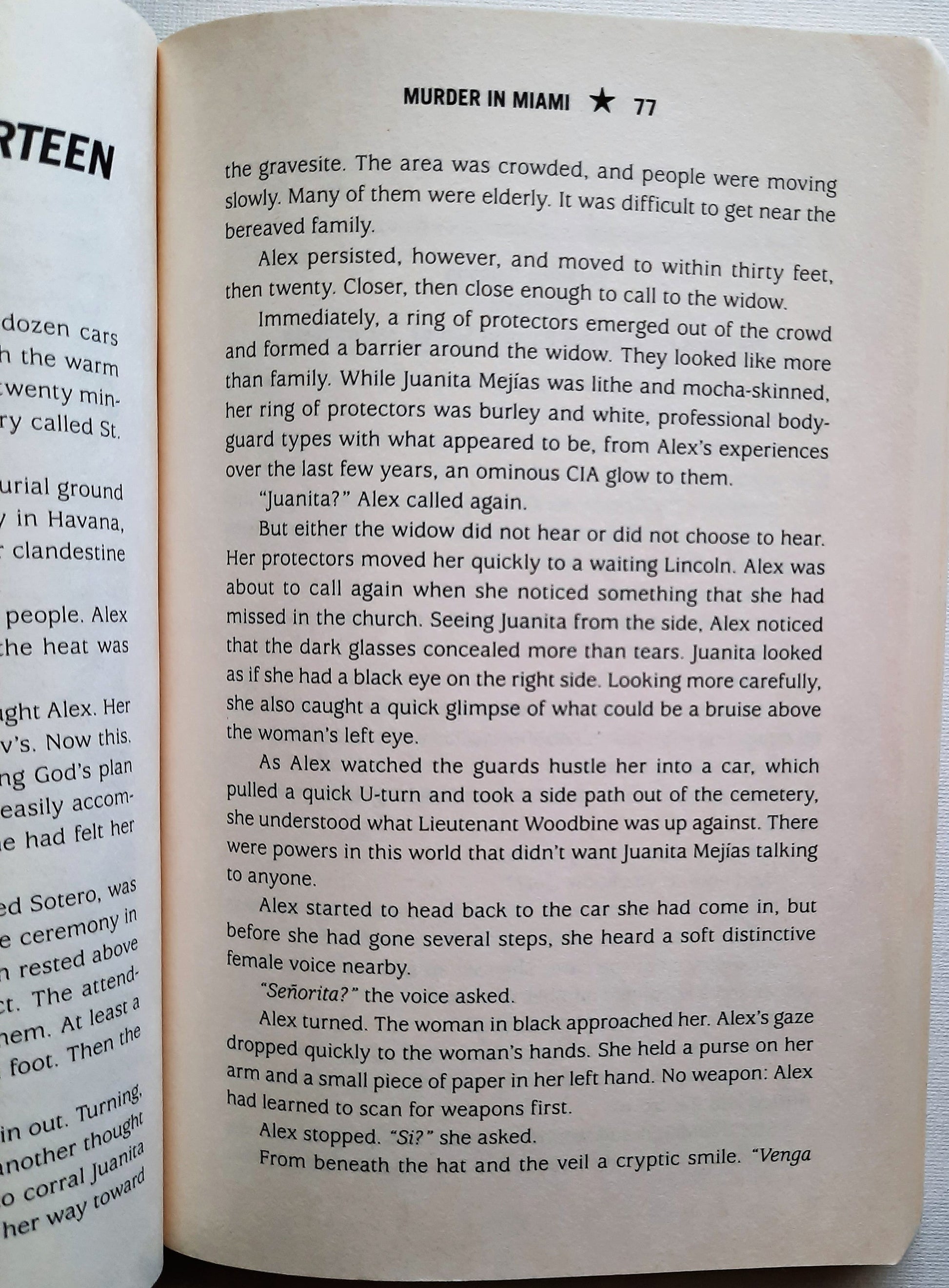 Alex LaDuca travels to Miami to continue her investigations into the murder-and-money laundering activities of the Dosi cartel, an intrigue set in motion in Hostage in Havana. Sent there by the U.S. Treasury Department to speak with a recent Cuban defector, she soon realizes this key player may be no help at all. A vast global money laundering scheme fueled by cocaine profits. A man who promises to put Alex “in touch with the deceased.” A lethal trap by the Dosi cartel. A handsome actor back in New York who suggests that love and romance may soon return to Alex’s life … Alex attempts to navigate a Miami underworld that encompasses elements of the surreal and supernatural. But can Alex emerge from this world with her life―and her faith―intact? Can she get past the painful tragedy of her past and discover God’s plan for her future?