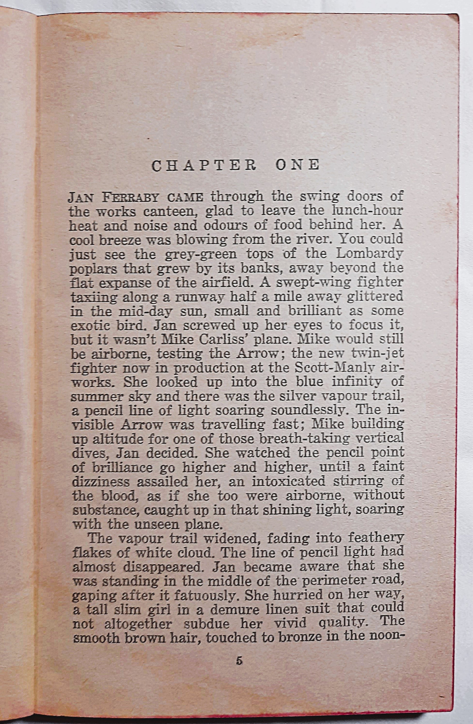 Jan's busy life was one long rush; a full day's office work for a most exacting boss, then housekeeping for her father, sister, and brother, on a frighteningly inadequate income. Even the long journey to and from work had to be spent usefully in knitting. But still her thoughts found time to stray far, far into the sky, where a certain test pilot carried out his thrilling, dangerous missions.