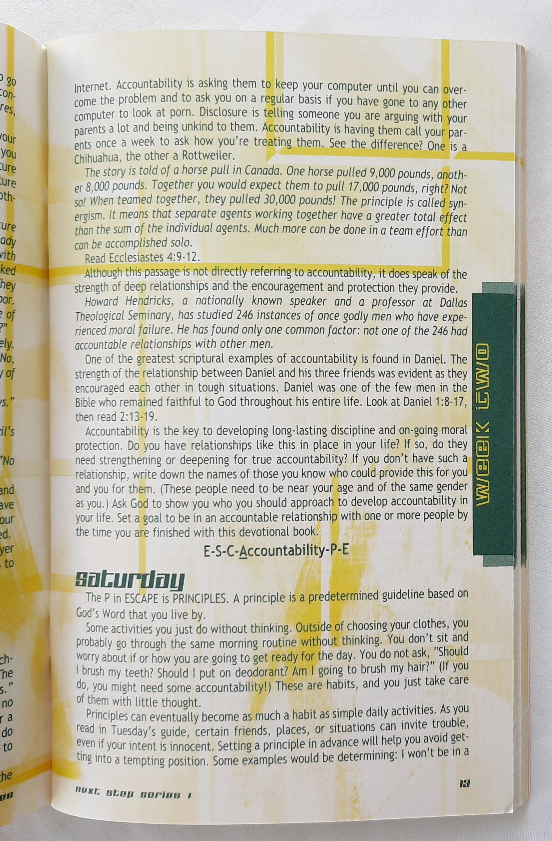 After you’ve gone through the My Quiet Time Series, you’re ready for . . . the Next Step. Next Step has the same time-proven 13-week (quarterly) format using illustrations, Scripture, and application, but goes deeper into each topic. Each week follows a theme such as spiritual growth, witnessing, and stewardship. There are also Scriptural studies such as James and Ephesians.