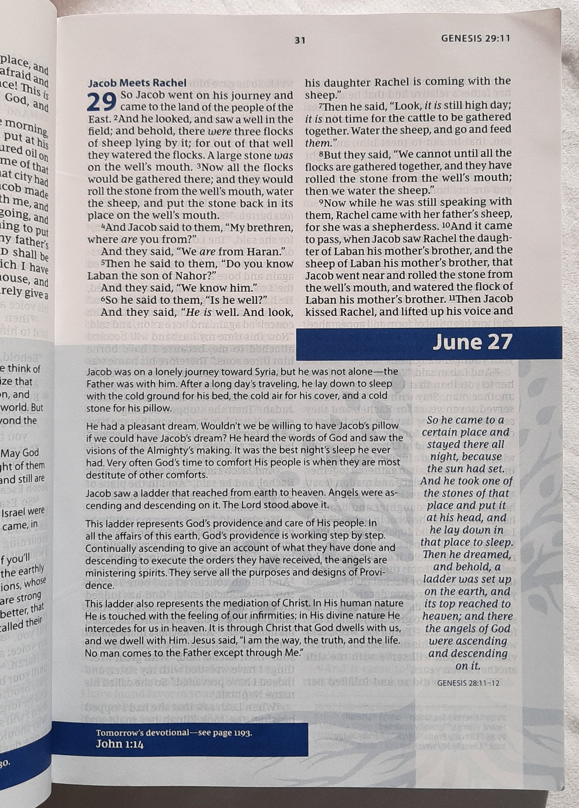 - 366 daily devotions tailored to the days reading to easily connect God’s Word to your life
