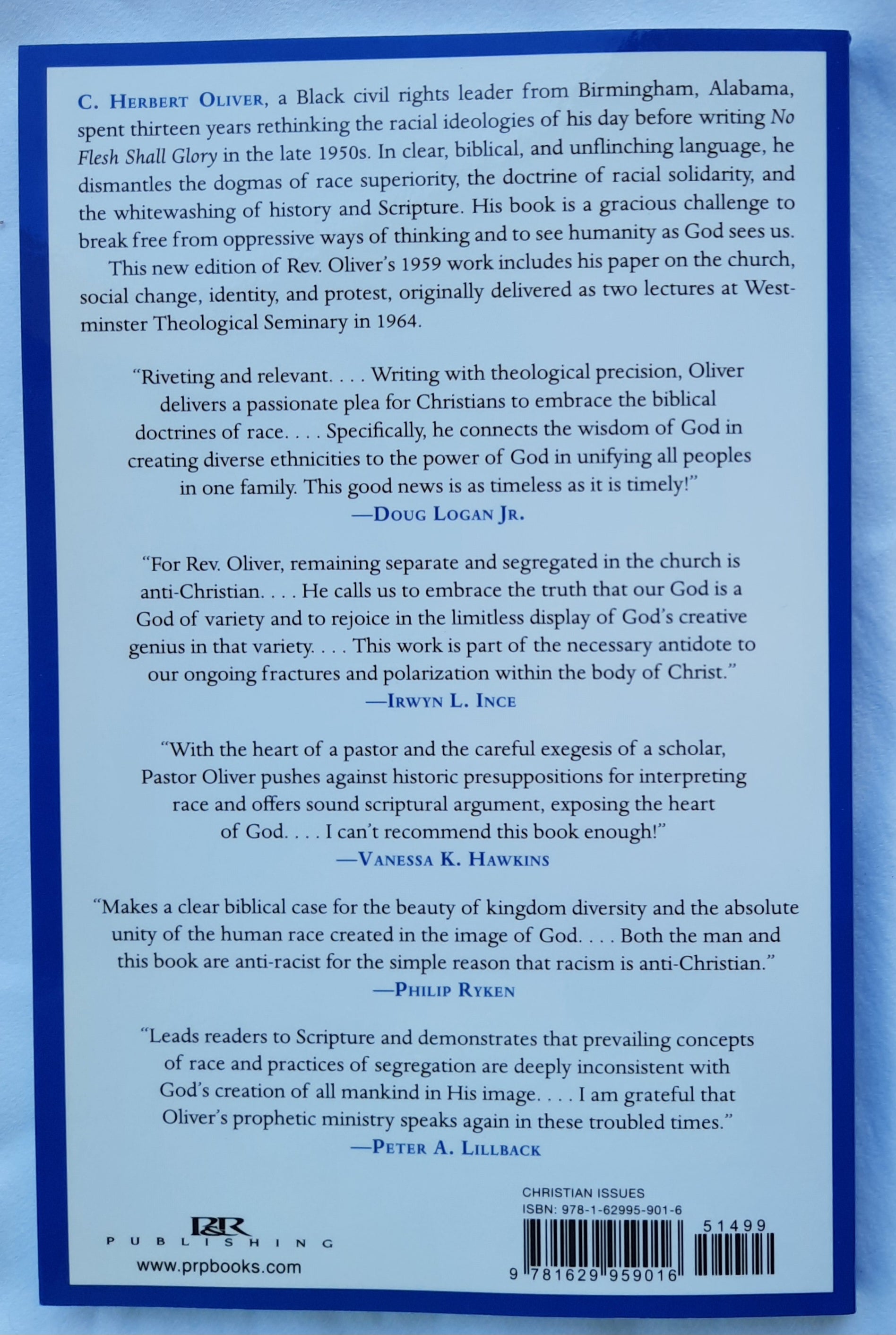 C. Herbert Oliver, a Black civil rights leader from Birmingham, Alabama, and a pastor in the Orthodox Presbyterian Church, spent thirteen years rethinking the racial ideologies of his day before writing No Flesh Shall Glory in the late 1950s. In clear, biblical, and unflinching language, he dismantles the dogmas of race superiority, the doctrine of racial solidarity, and the whitewashing of history and Scripture. More than that, however, he returns to the Bible’s powerful and freeing conception of humanity. “[It is my intention] to curtail all types of racism by destroying the ground on which they stand and by pointing men to nobler ends.” His book is a gracious challenge to Christians then and now―an invitation to break free from oppressive ways of thinking and to see humanity as God sees us. This reprinting also includes Rev. Oliver’s lectures on the church, social change, identity, and protest, delivered at Westminster Theological Seminary in 1964.