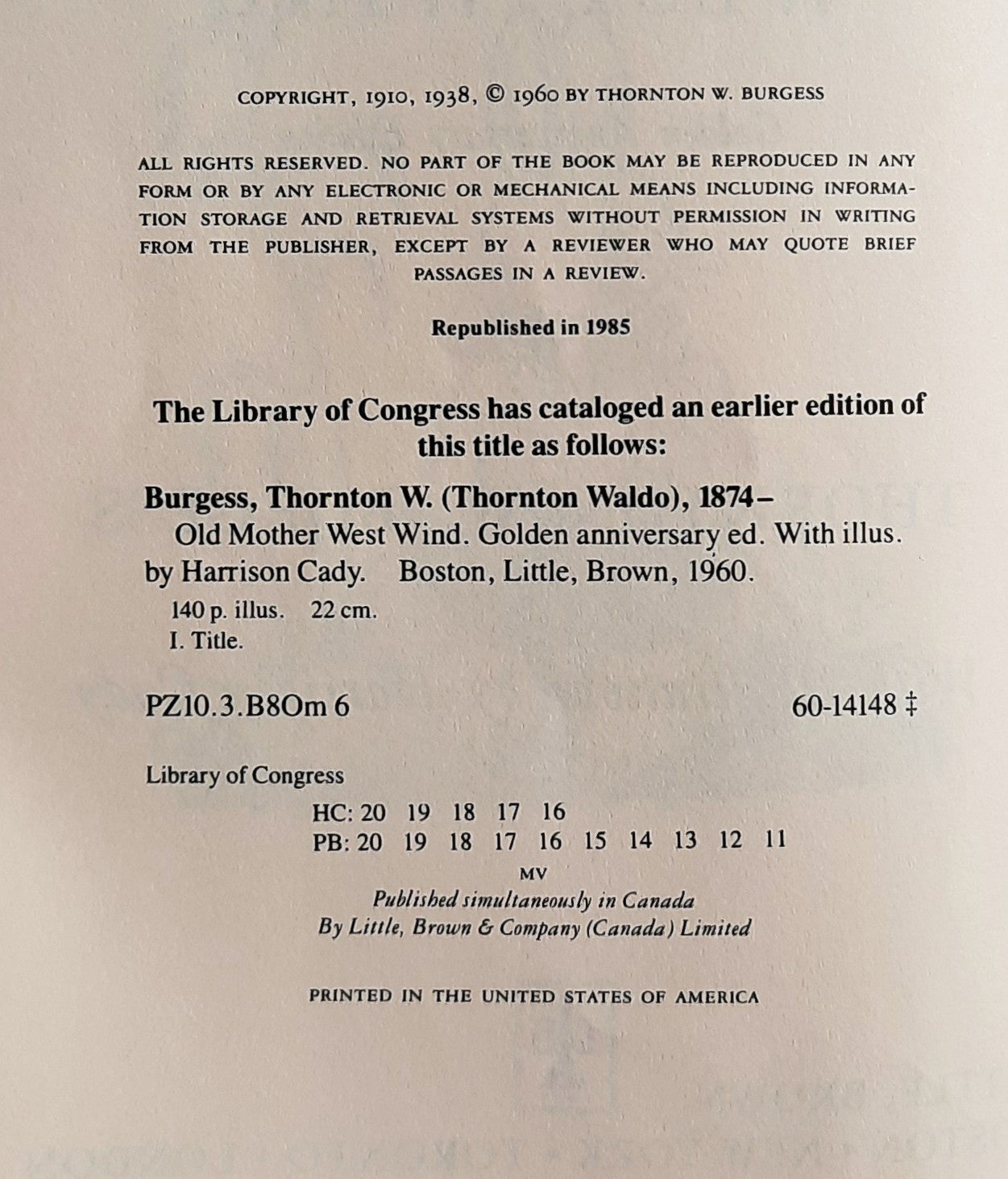 Old Mother West Wind by Thornton W. Burgess; Harrison Cady (Good, 1985, Pbk, 140 pages, Little, Brown & Co.)