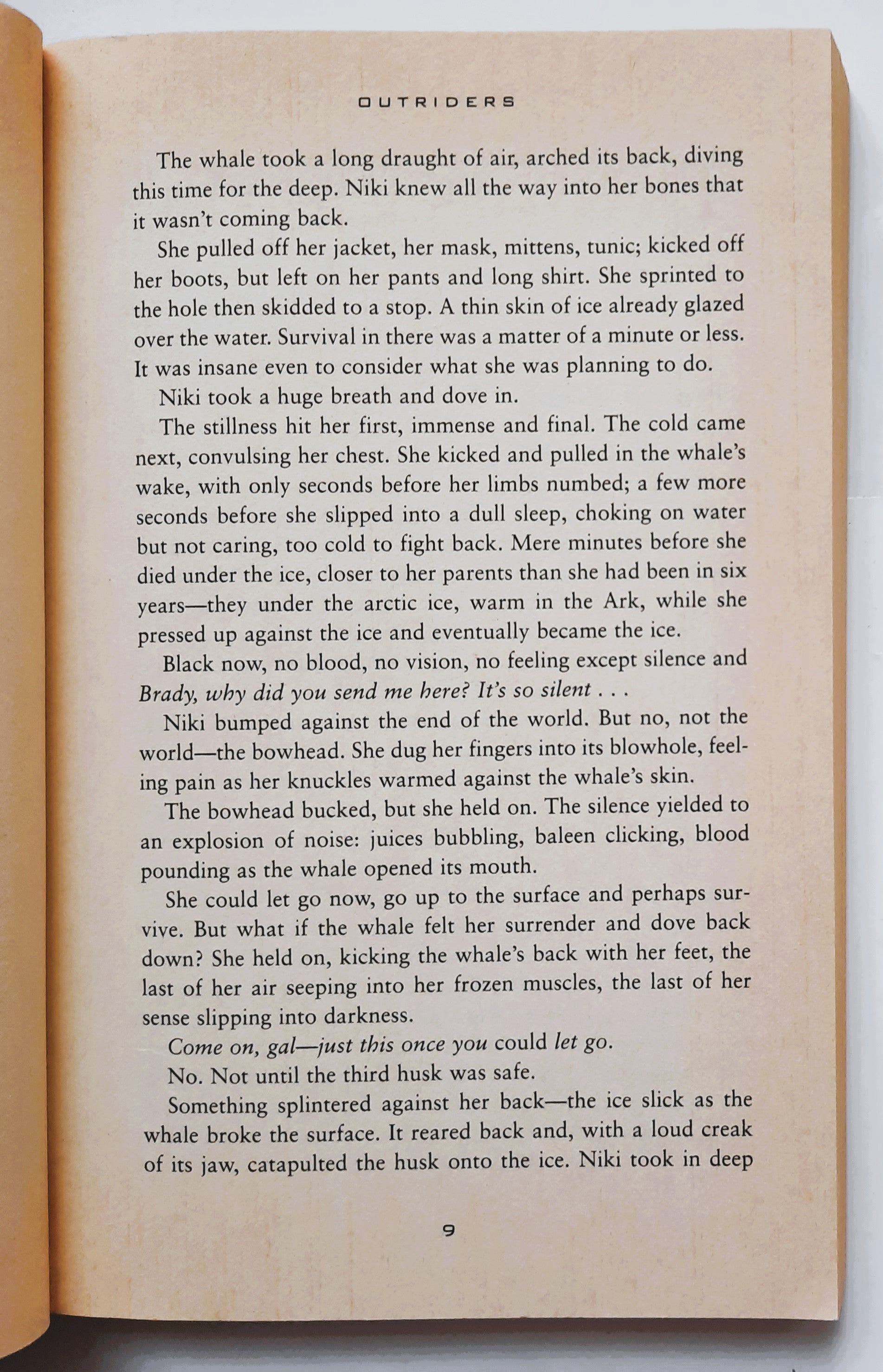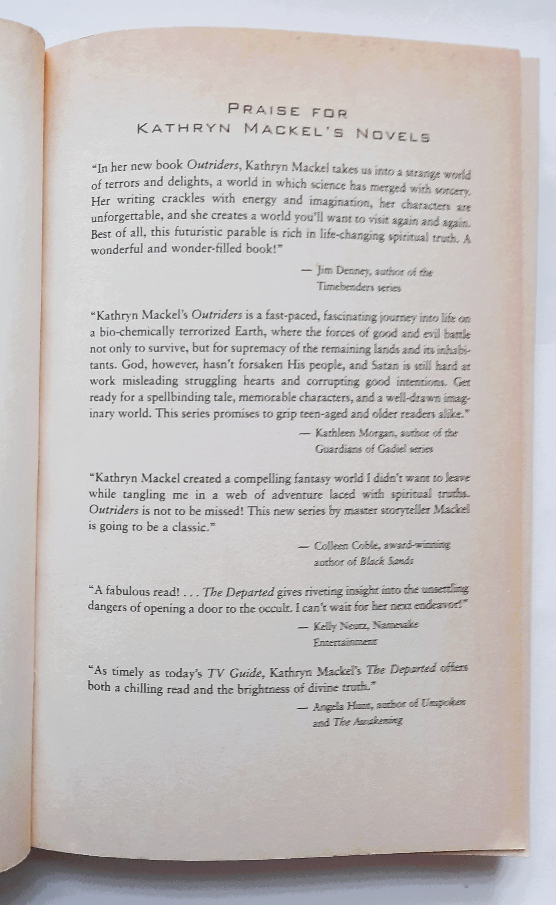This daring team roams the blighted earth. They are Outriders, young warriors who wield swords and wits to protect the birthrighter camps. When rookie birthrighters arrive from the Ark, however, the battle turns into something no one expected. Not only must they battle the merciless warlord Alrod and his horde of gigantic mutants, but a new and more powerful enemy has revealed itself, a darkness that threatens to destroy the world they've been charged to save.