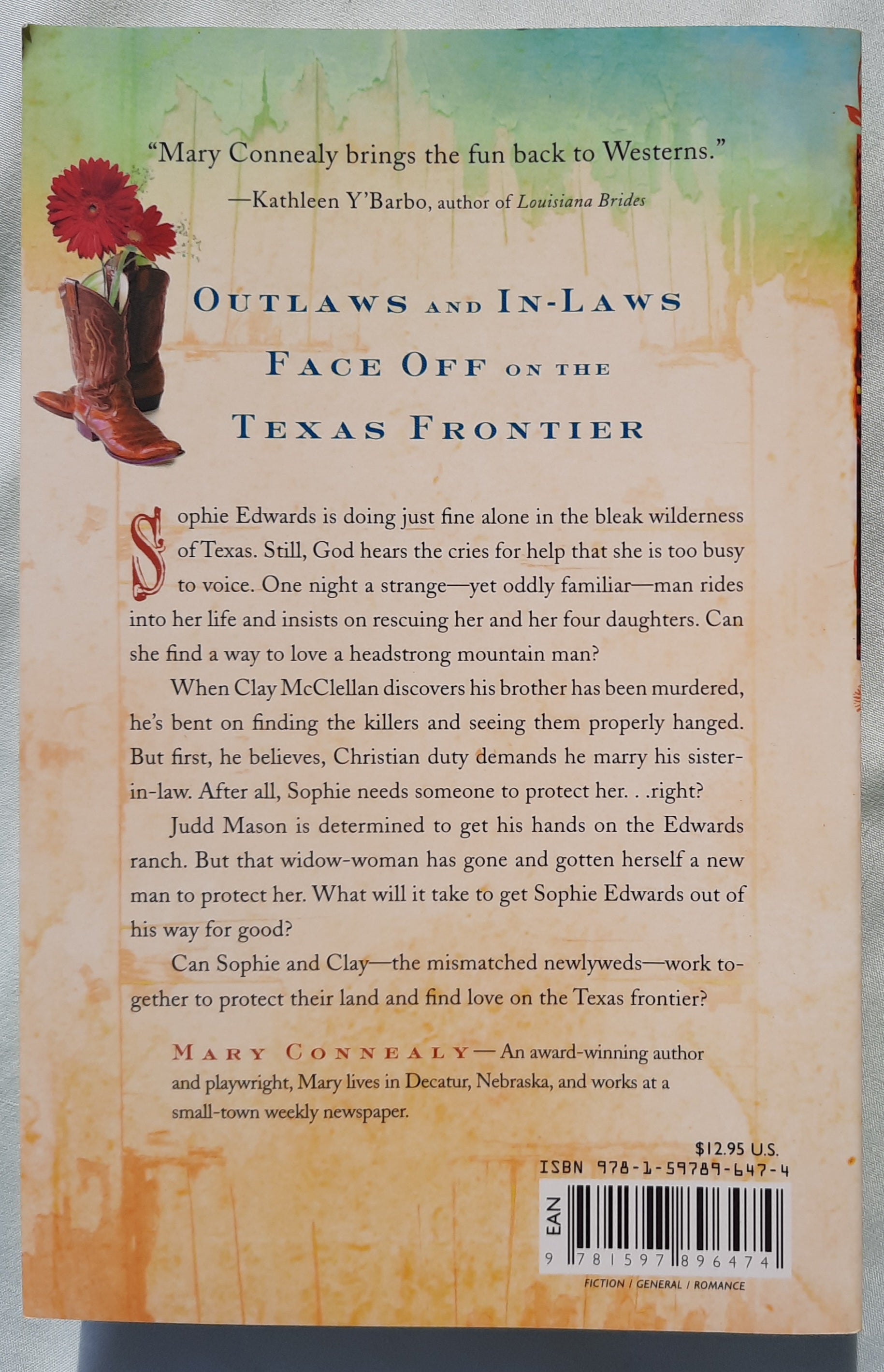 Sophie Edwards is doing just fine alone, until a strange-yet oddly familiar-man rides into her life, insisting on rescuing her and her four daughters. Can she find a way to love a headstrong mountain man? When Clay McClellan discovers his brother has been murdered, he's bent on finding the killers and seeing them properly hung. But first his Christian duty demands that he marry his sister-in-law. After all, Sophie needs someone to protect her - right? Faith and love help unruly wed newlyweds find common ground and a chance at love on the Texas frontier.