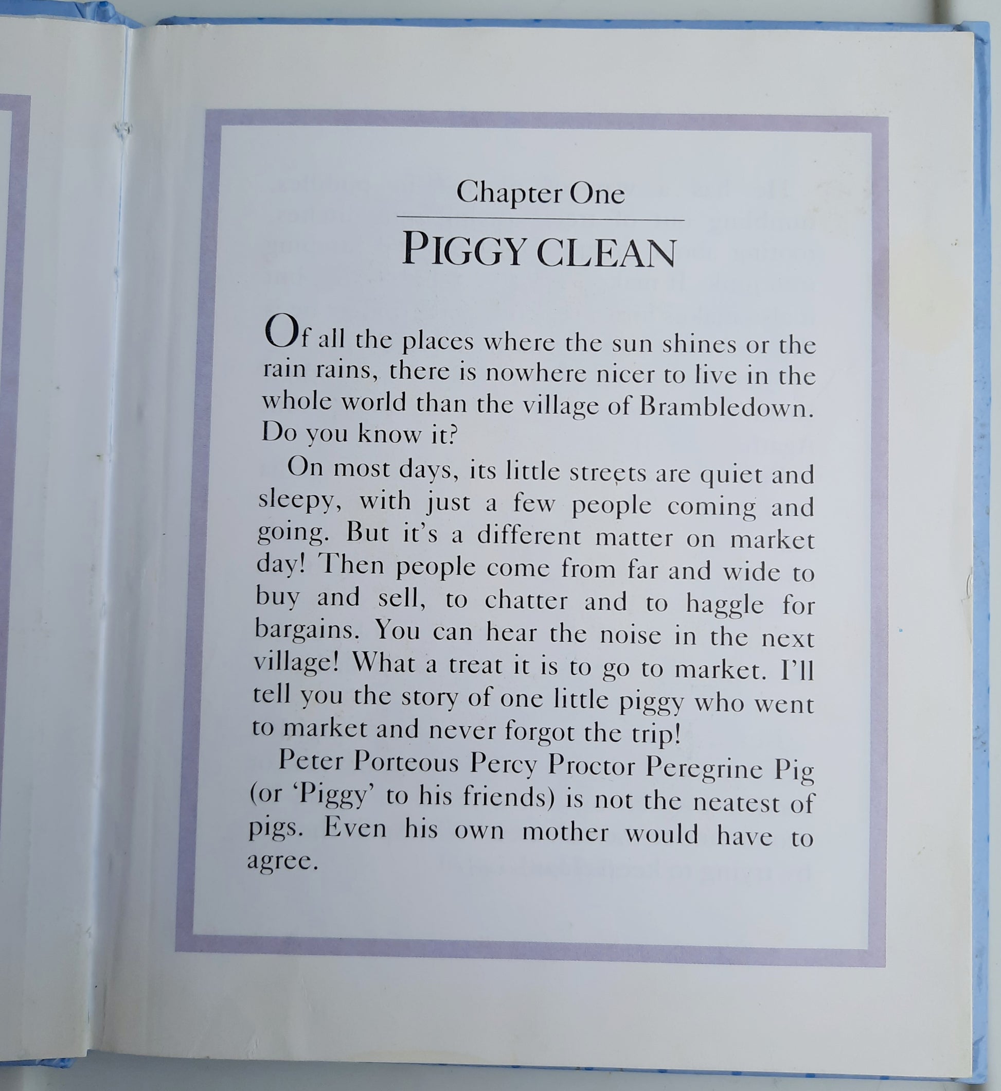When Peter Porteous Percy Proctor Peregrine Pig finally gets to market in his new suit, he discovers that it's true that good things happen to clean pigs.