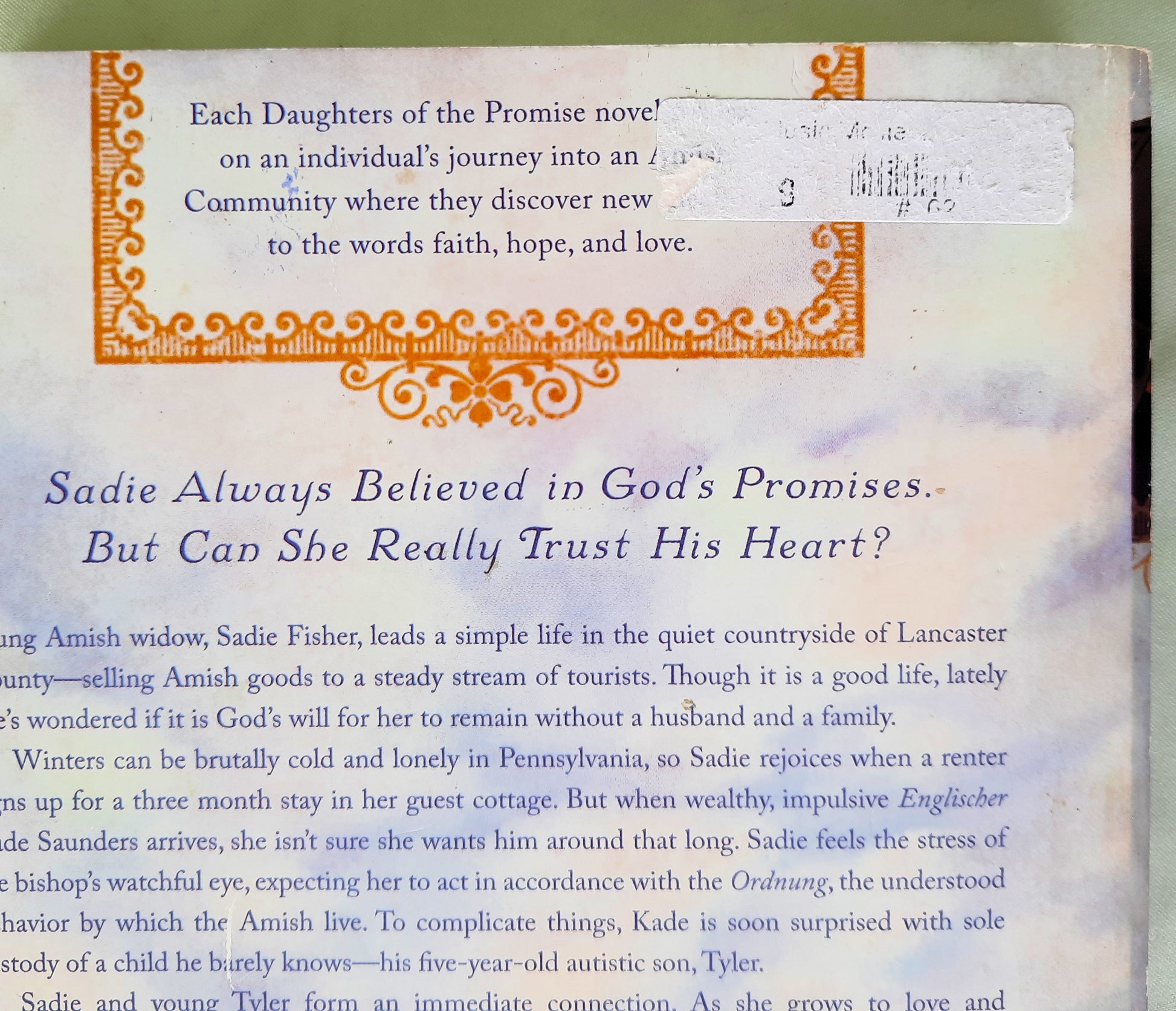 Young Amish widow, Sadie Fisher, leads a simple life in the quiet countryside of Lancaster County selling Amish goods to a steady stream of tourists. Though it is a good life, lately she’s wondered if it is God’s will for her to remain without a husband and a family.