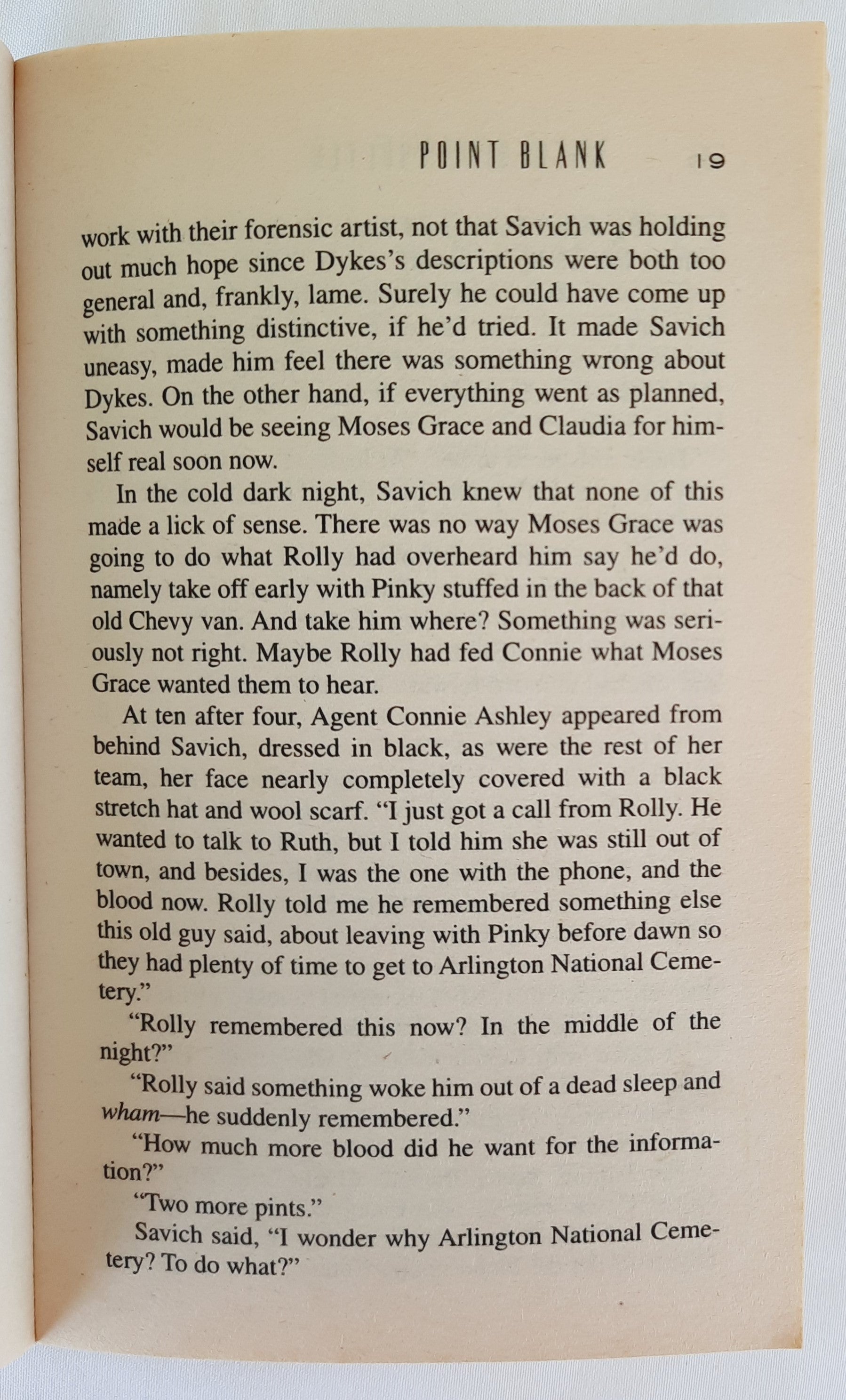 Then, at a stake-out in Maryland, FBI agents Dillon Savich and Dane Carver are nearly killed in a horrific explosion while attempting to rescue kidnap victim, Pinky Womack. They are led to Arlington National Cemetery where they not only find Pinky, but Savich also takes a fateful call on his cell from an old man out to kill both him and Sherlock. The thing is they have no clue why.