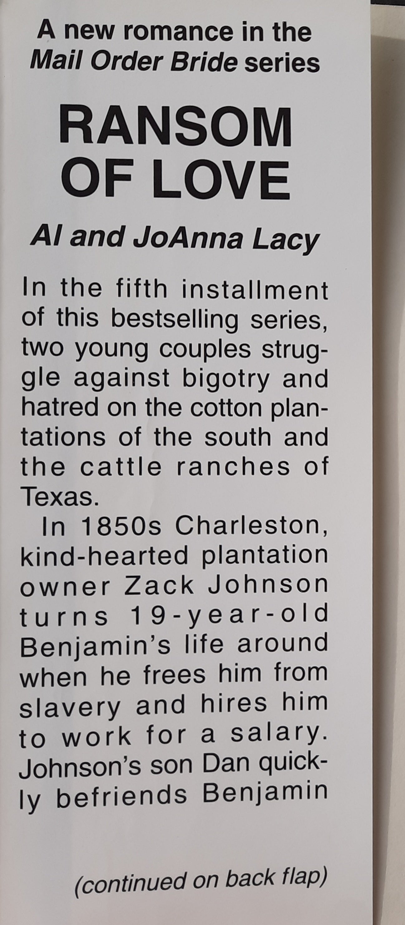 Ransom of Love by Al & Joanna Lacy (Mail Order Bride #5, Very good, 2000, HC, 572 pages, Doubleday Direct Large Print)