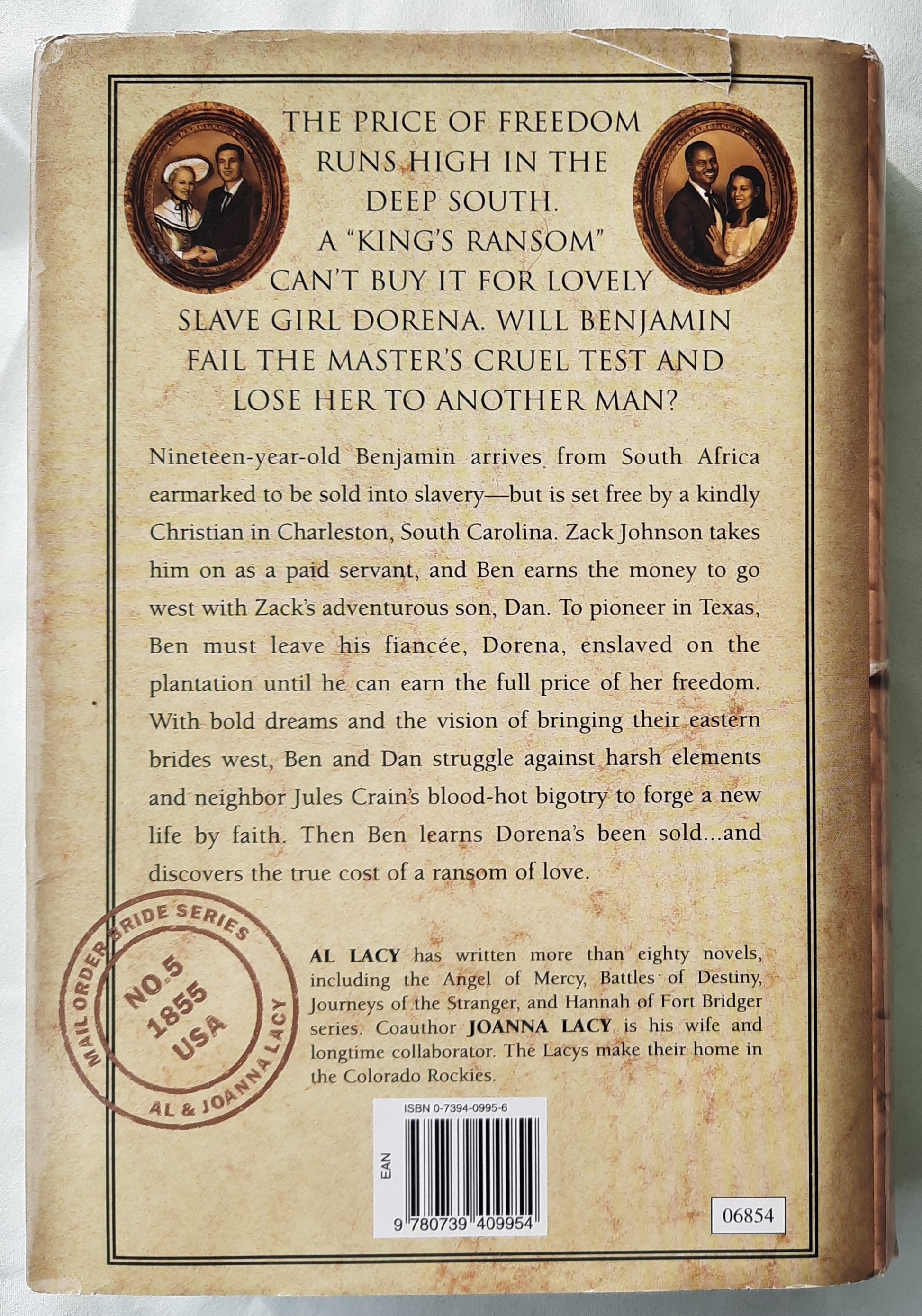 When nineteen-year-old Benjamin arrives from South Africa, he is scheduled to be sold into slavery--but is set free by a Christian who takes him in as a paid worker. The man's son, Dan Johnson, befriends Benjamin, and the two make plans to start a cattle ranch in Texas. With bold dreams and the support and courage of their mail order brides, they struggle against bigotry and hatred to find their dream of happiness