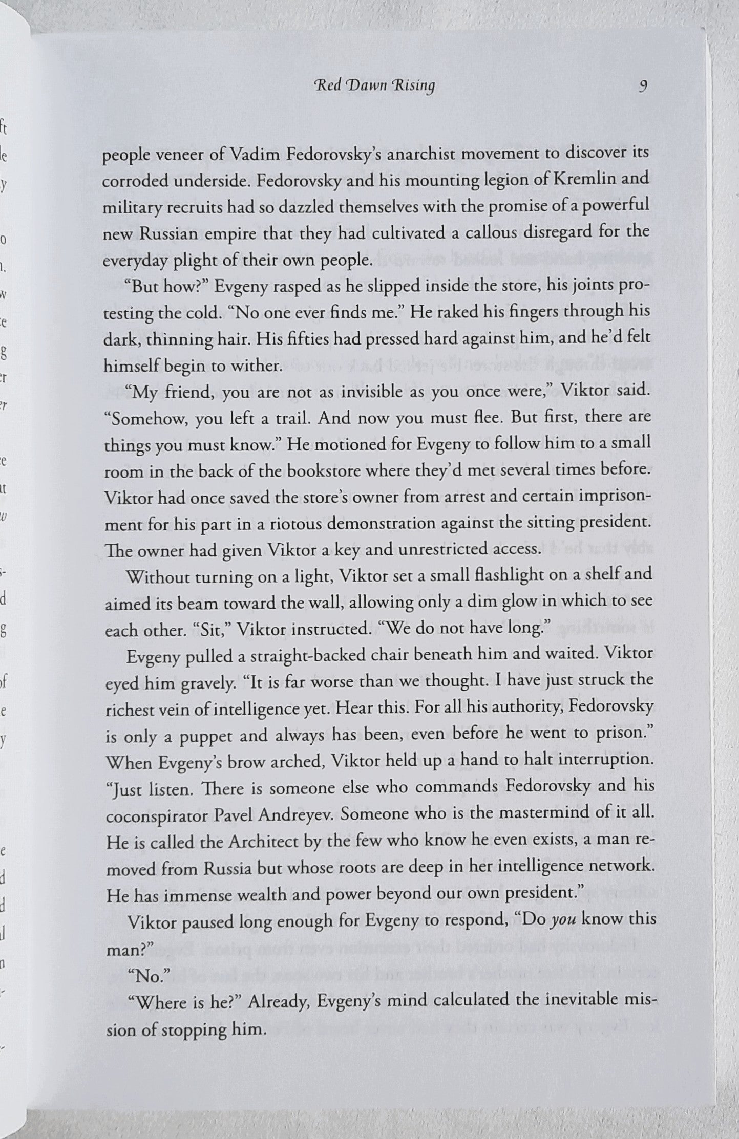 Evgeny Kozlov has secrets of his own. A former KGB assassin, he is trying to outrun the underground revolution he once served. Trying to right his wrongs, he's in a race against time and against a former colleague, Ivan, who has sinister plans to bring down the United States, including an assassination attempt on famed pianist Liesl Bower.