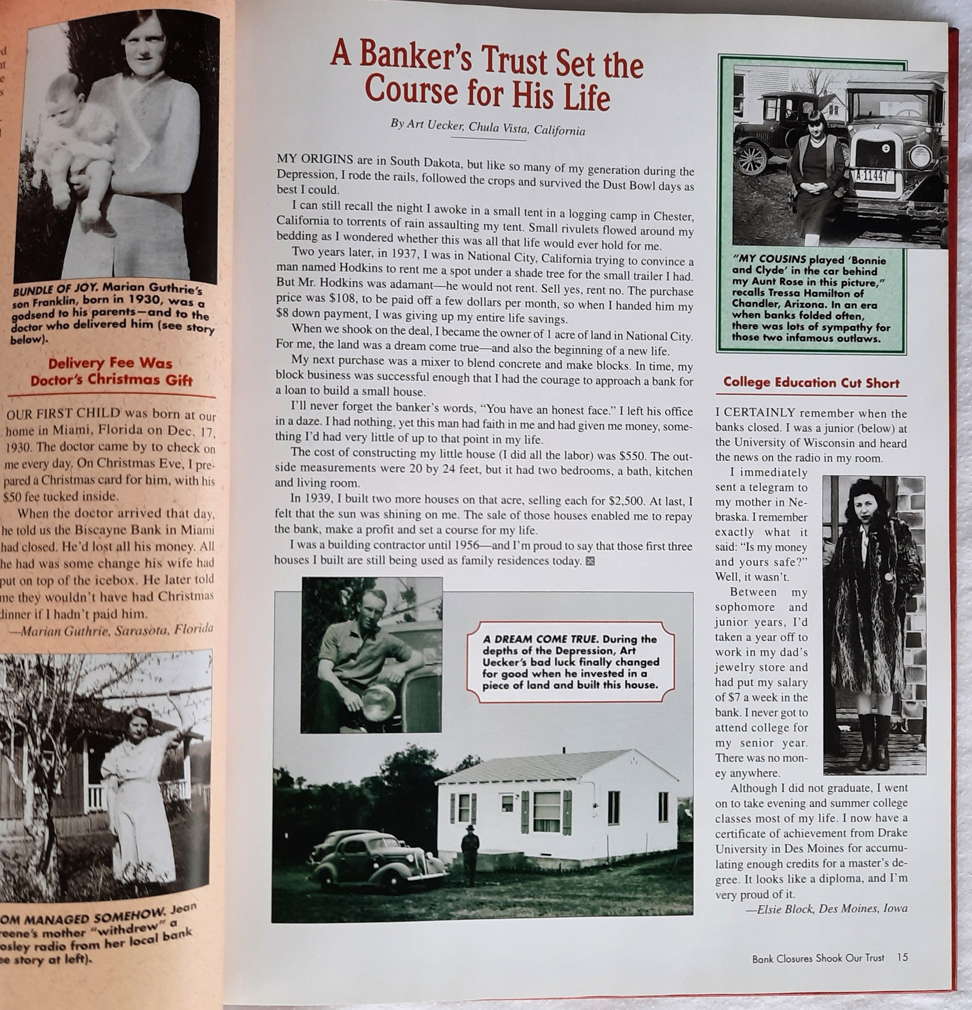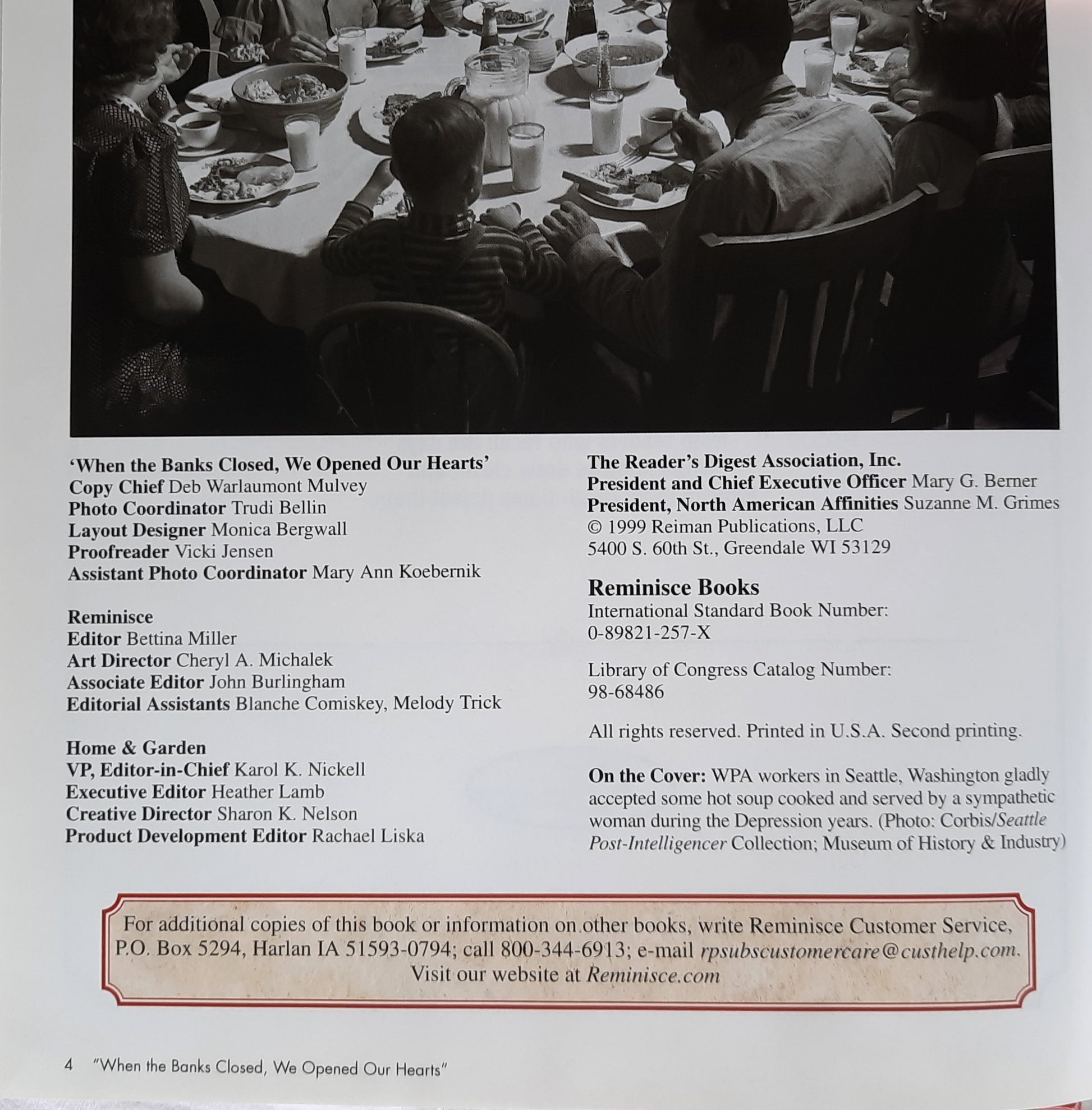 Reminisce Books: 'When the Banks Closed, We Opened Our Hearts' edited by Deb Mulvey (Like new, 1999, HC, 162 pages, Reiman Media)