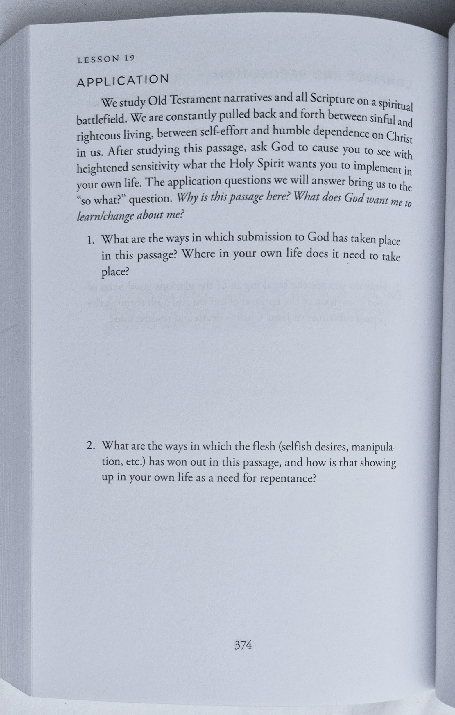 - Questions specific to the passage draw in portions from the rest of Scripture.