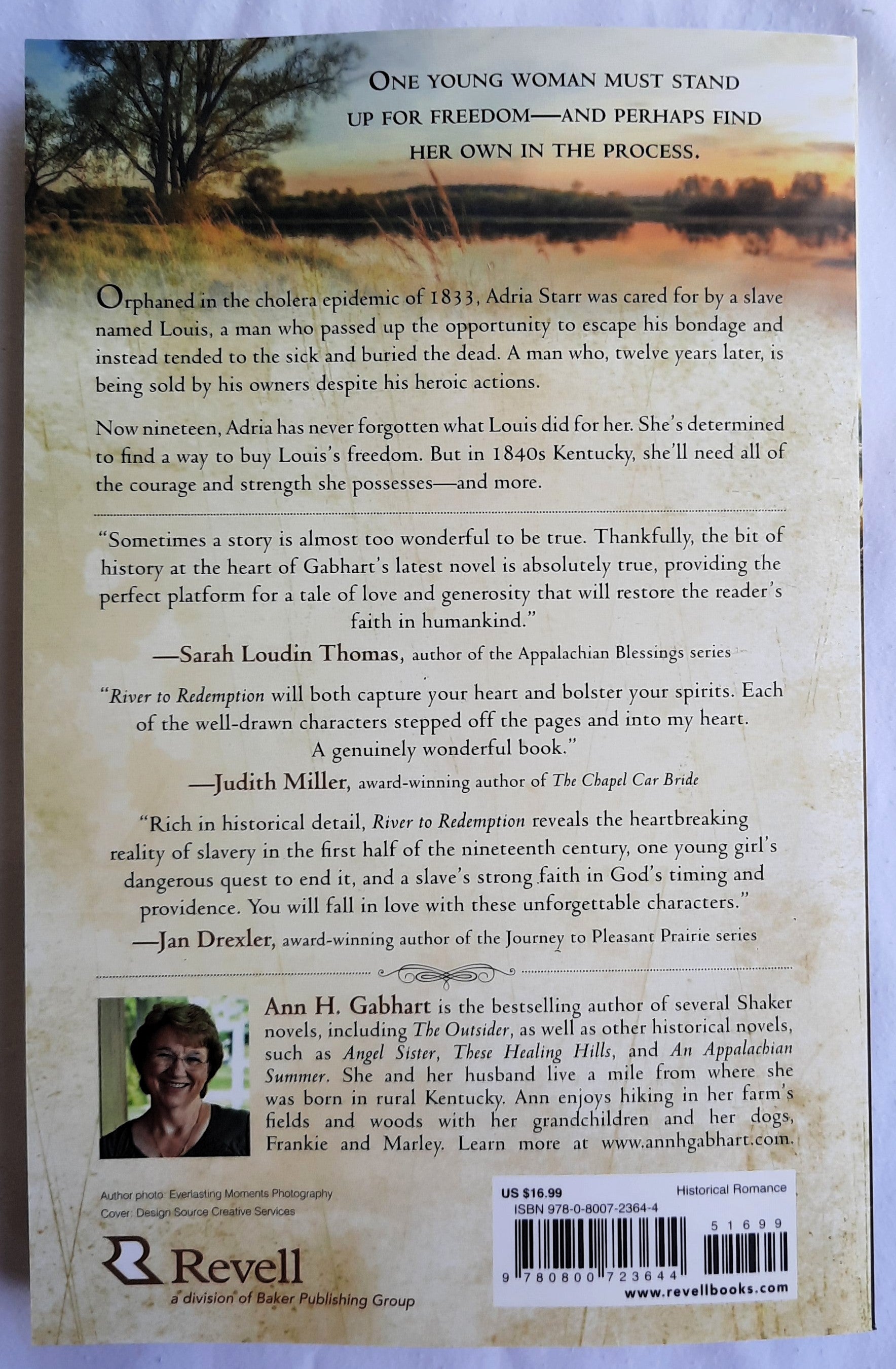Orphaned in the cholera epidemic of 1833, Adria Starr was cared for by a slave named Louis, a man who stayed in Springfield, Kentucky, when anyone with means had fled. A man who passed up the opportunity to escape his bondage and instead tended to the sick and buried the dead. A man who, twelve years later, is being sold by his owners despite his heroic actions. Now nineteen, Adria has never forgotten what Louis did for her. She's determined to find a way to buy Louis's freedom. But in 1840s Kentucky, she'll face an uphill battle.