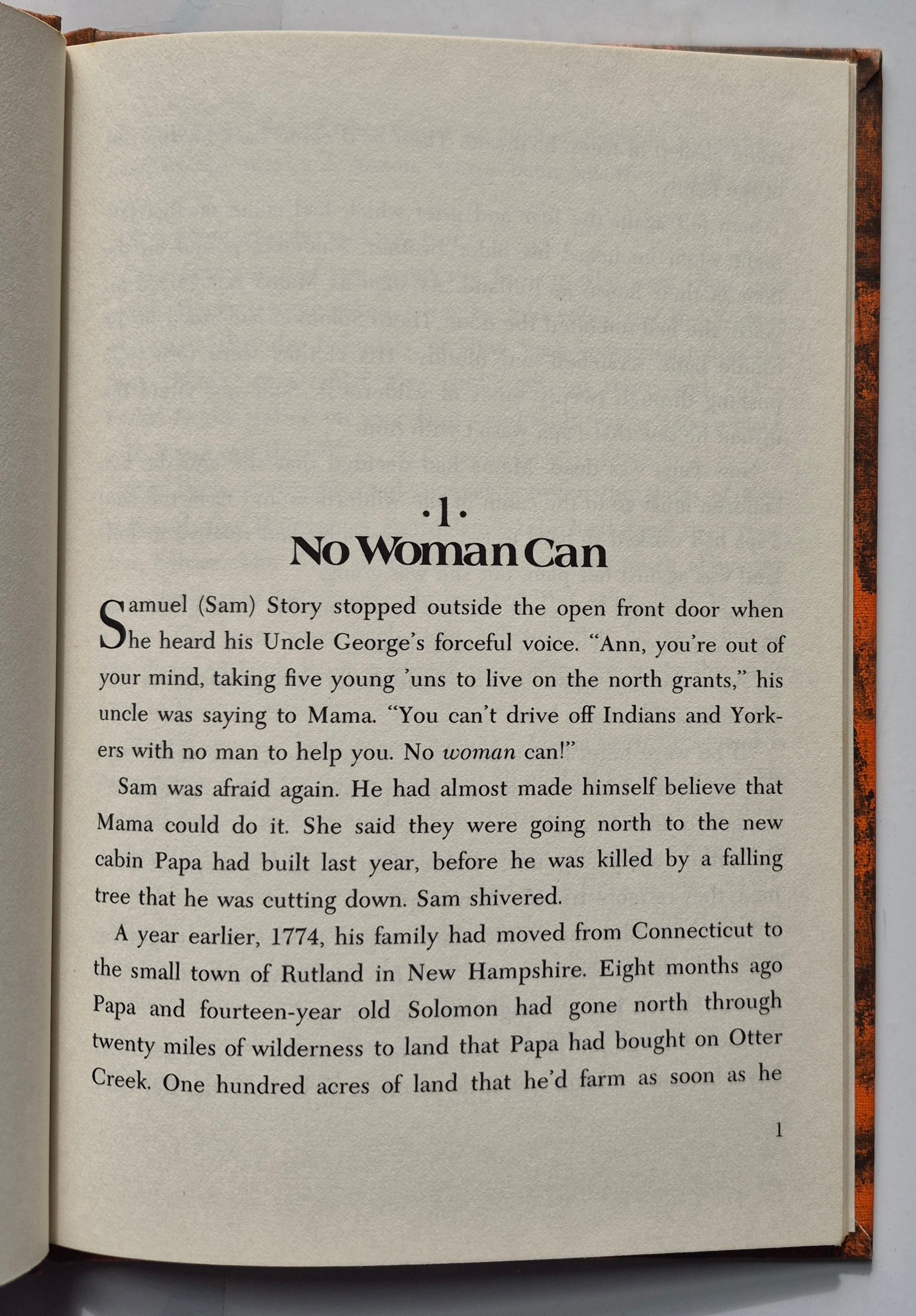 Nine-year-old Sam Story accompanies his mother, two brothers and two sisters to the wilds of Vermont in 1774 to settle on the farm Sam's father built before he was killed by a falling tree he had cut down.