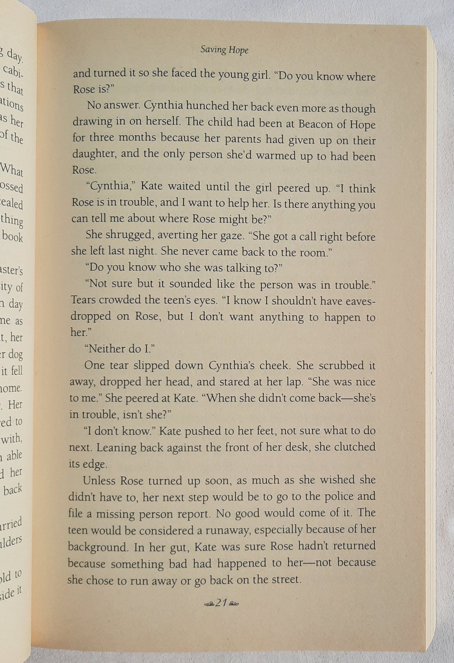 When a teenager goes missing from the Beacon of Hope School, Texas Ranger Wyatt Sheridan and school director Kate Winslow are forced into a dangerous struggle against a human trafficking organization. But the battle brings dire consequences as Wyatt's daughter is terrorized and Kate is kidnapped.