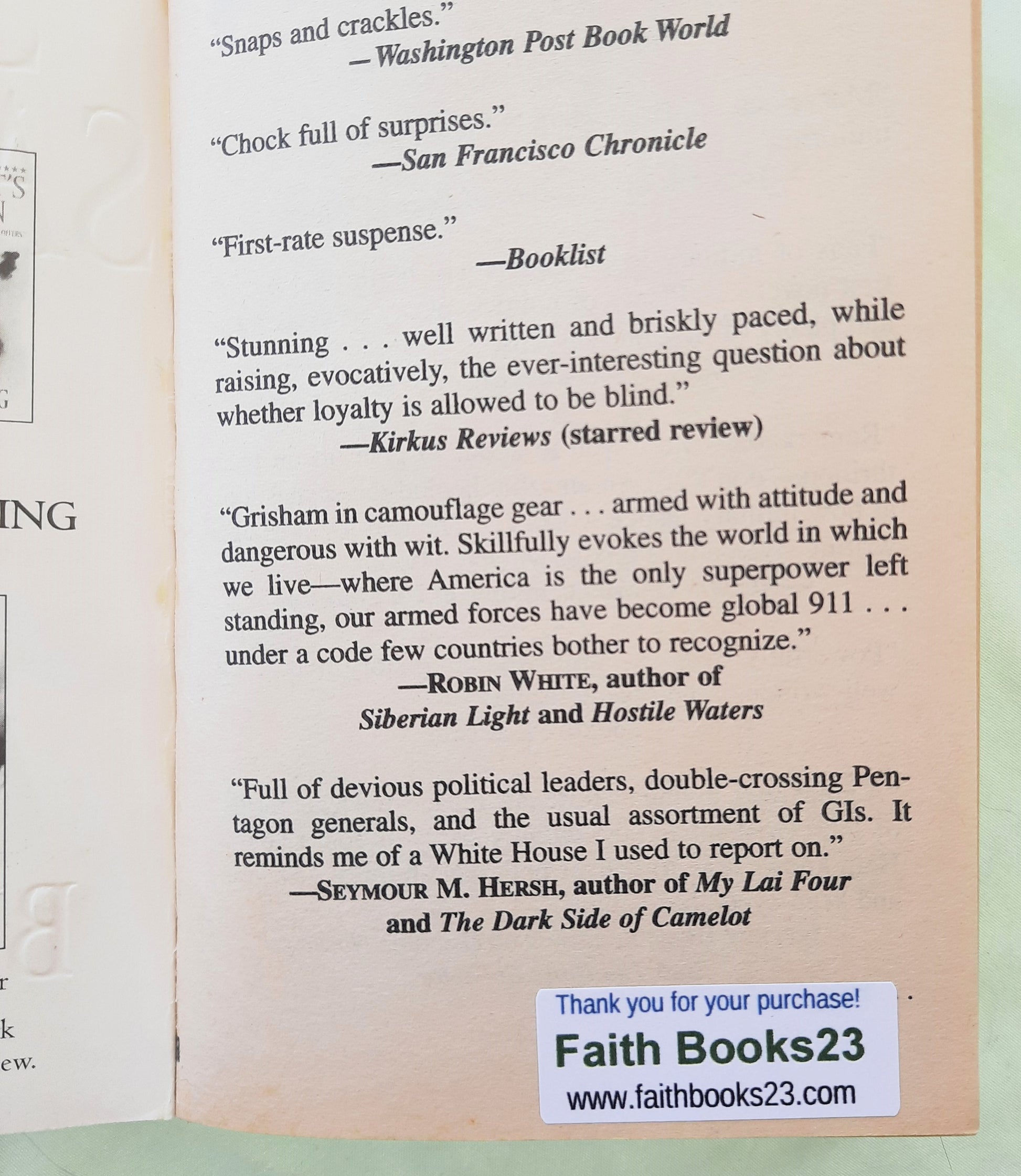 A battalion of Serbs has been senselessly murdered in Kosovo and the Green Berets stand accused. Now, Major Sean Drummond, a top Army lawyer, is assigned to investigate this unspeakable atrocity. But of course, no one saw anything. Drummond gets consistently suspicious depositions from all of the Green Berets: Supposedly pursued by Serb soldiers, they left the engagement with wounded Serbs firing at them, and no one can explain the number of deaths.