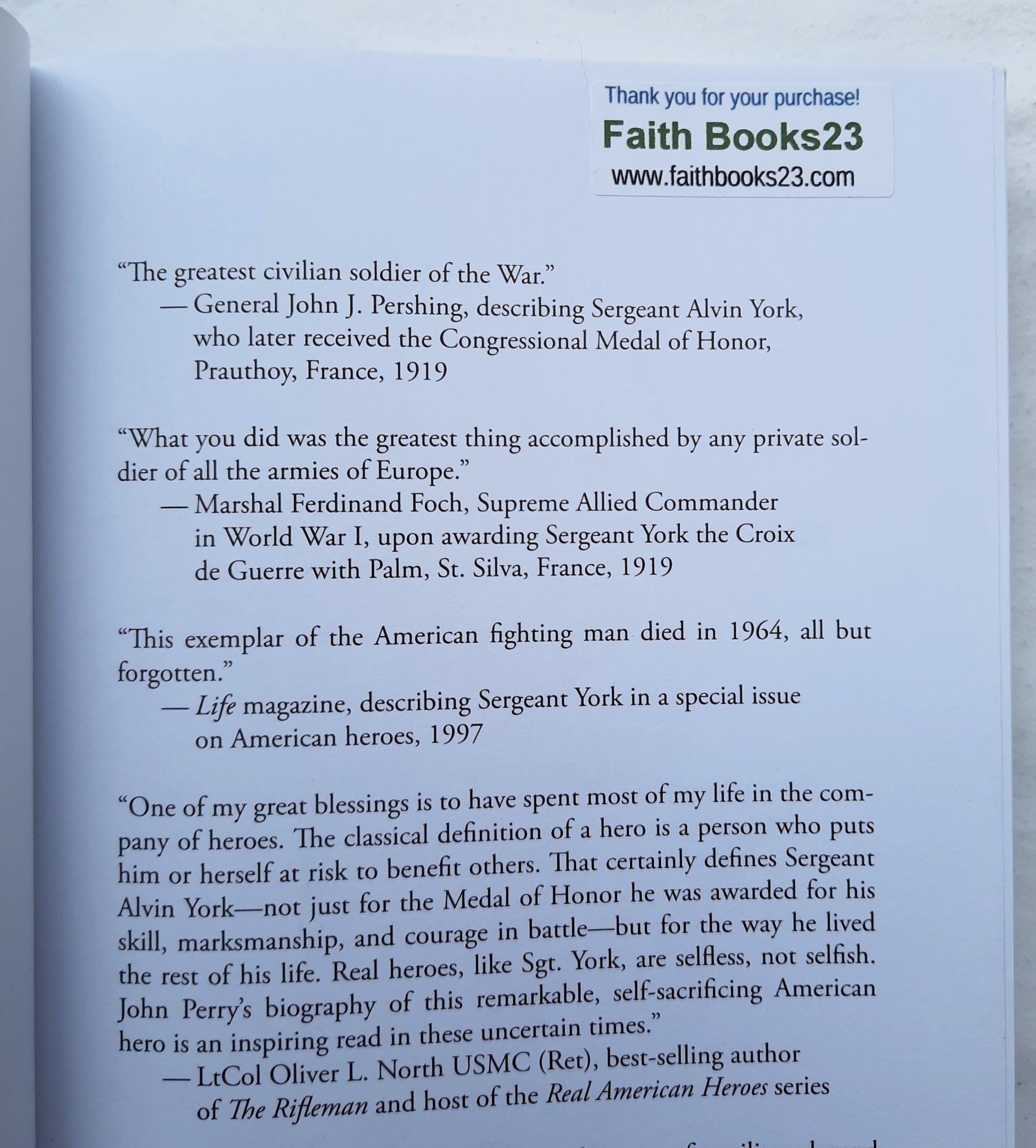 Sgt. York: His Life, Legend & Legacy remains the only complete biography of this great American patriot based on original sources. Author John Perry scoured military records including official accounts of York's famous battle from surviving eyewitnesses, as well as Warner Bros. archives in Hollywood for details about the film. He also interviewed a host of people who knew York including neighbors who welcomed him home from the war, attended his wedding, hunted and camped with him in the Wolf River Valley. York's four surviving children were eager participants in the project, with son George Edward Buxton York commenting upon reading the completed draft, tears streaming down his face, “Now people will know what my daddy was really like!”