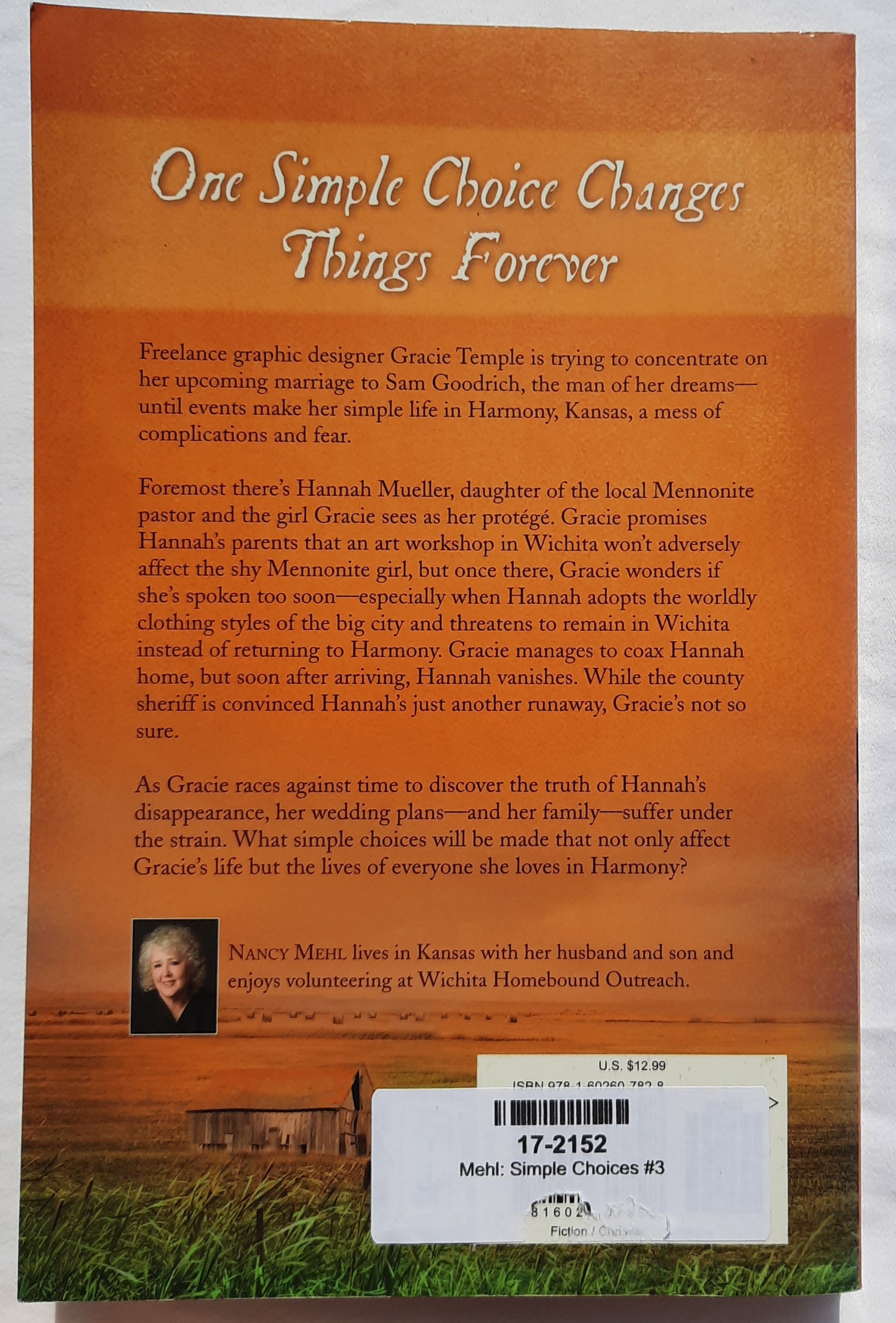 Simple Choices by Nancy Mehl (The Harmony Series #3, Very good, 2011, Pbk, 320 pages, Barbour)