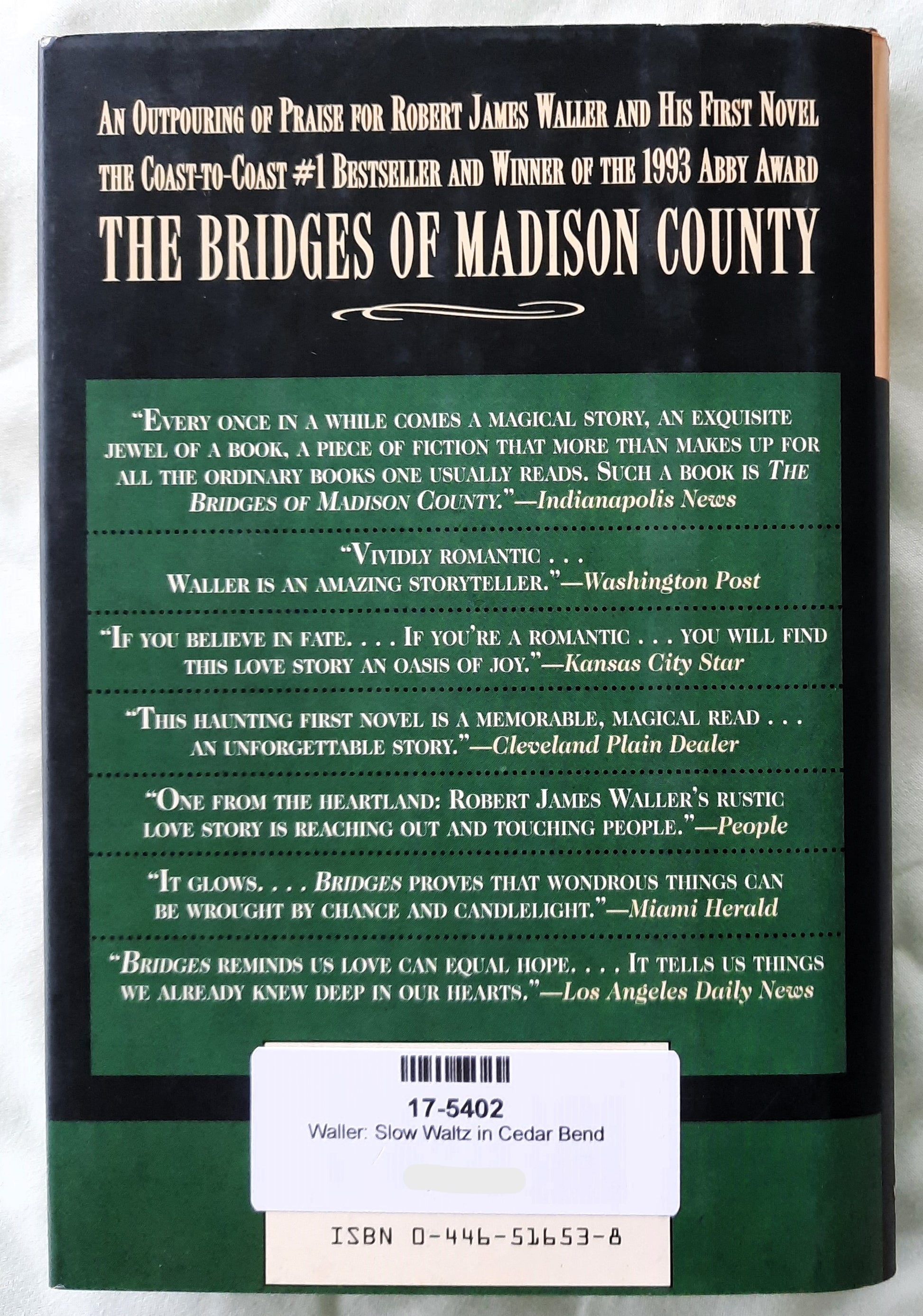 Slow Waltz in Cedar Bend by Robert James Waller (Very good, 1993, HC, 197 pages, Warner Books)