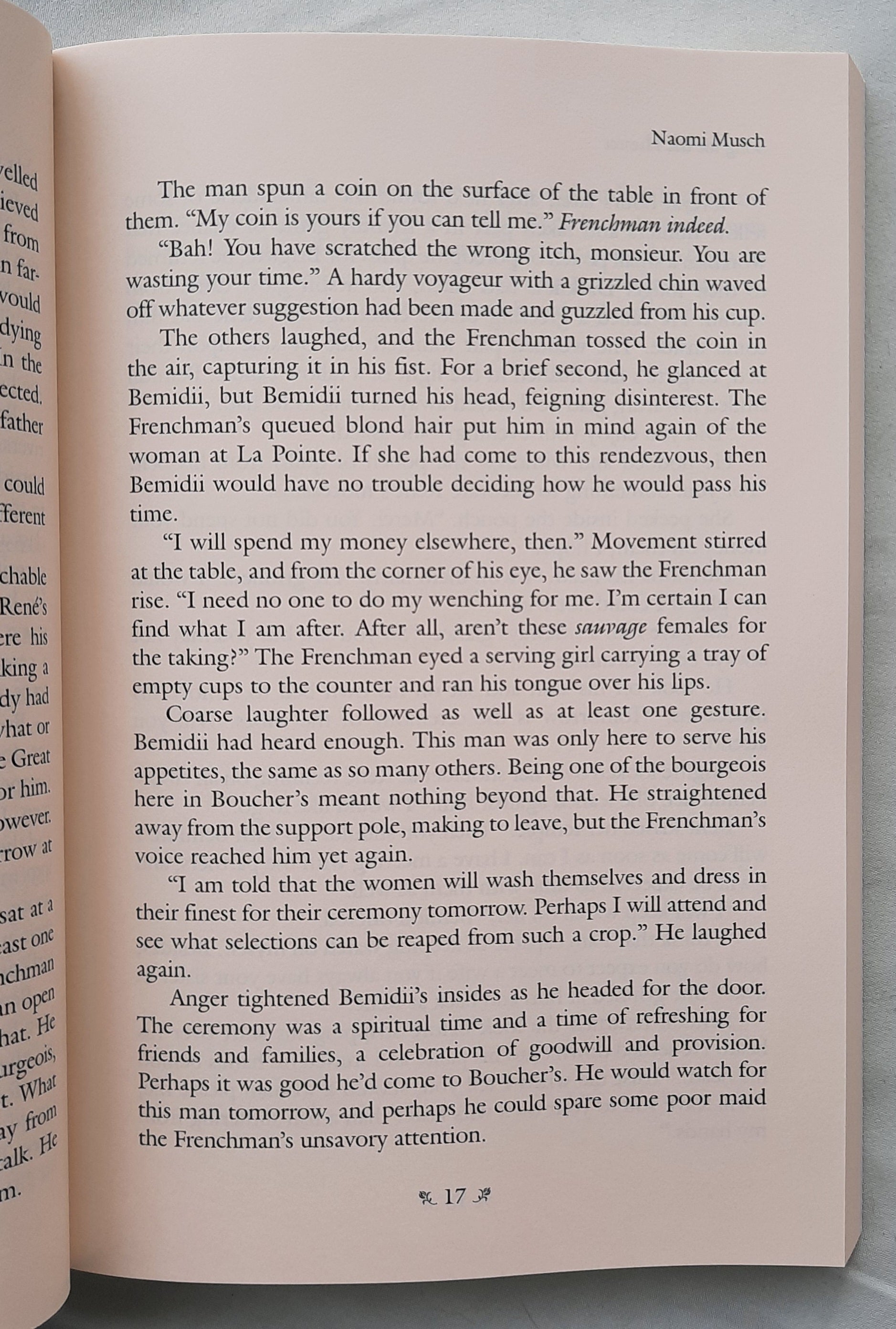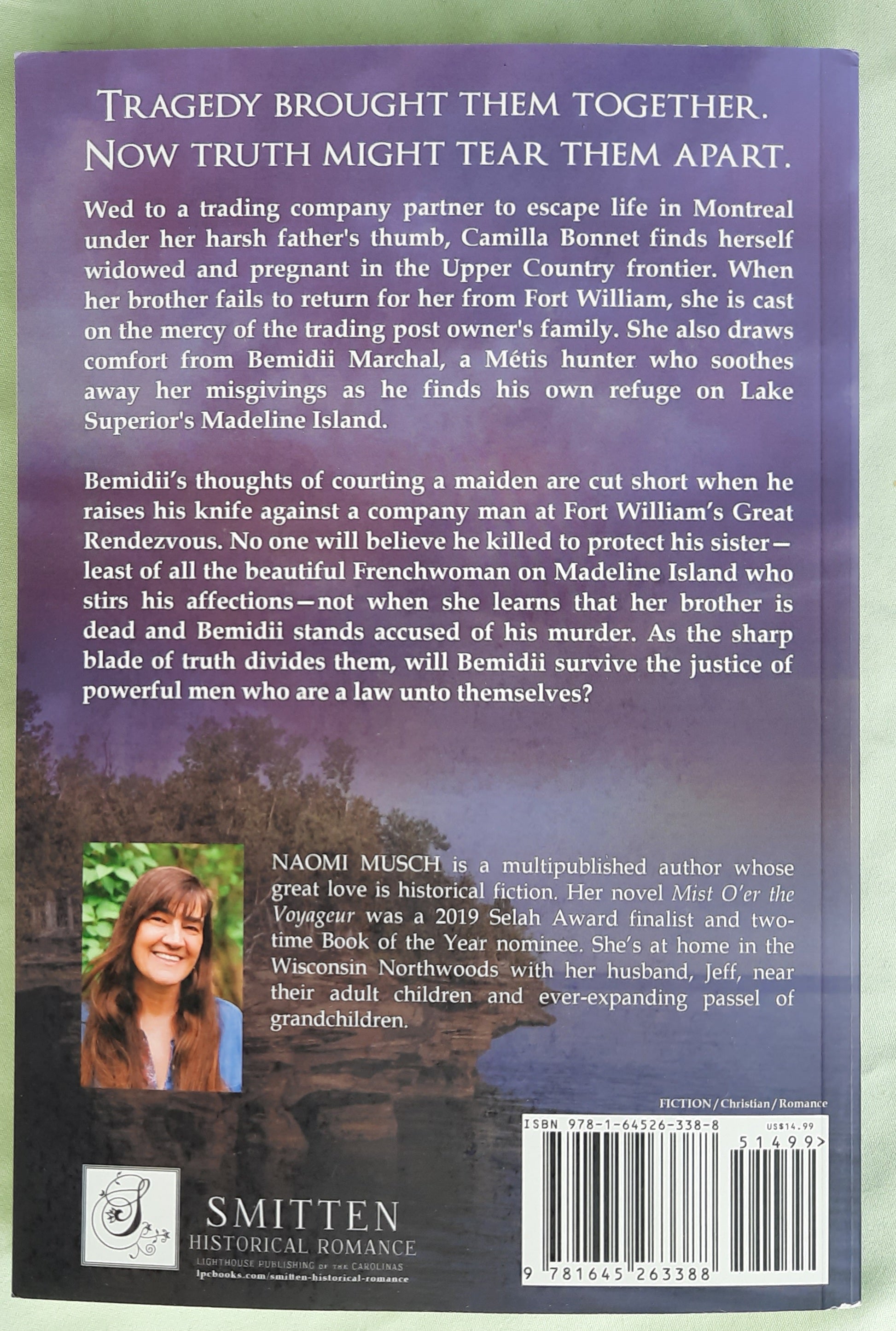 Wed to a trading company partner to escape life in Montreal under her harsh father's thumb, Camilla Bonnet finds herself widowed and pregnant in the Upper Country frontier. When her brother fails to return for her from Fort William, she is cast on the mercy of the trading post owner's family. She also draws comfort from Bemidii Marchal, a Métis hunter who soothes away her misgivings as he finds his own refuge on Lake Superior's Madeline Island.