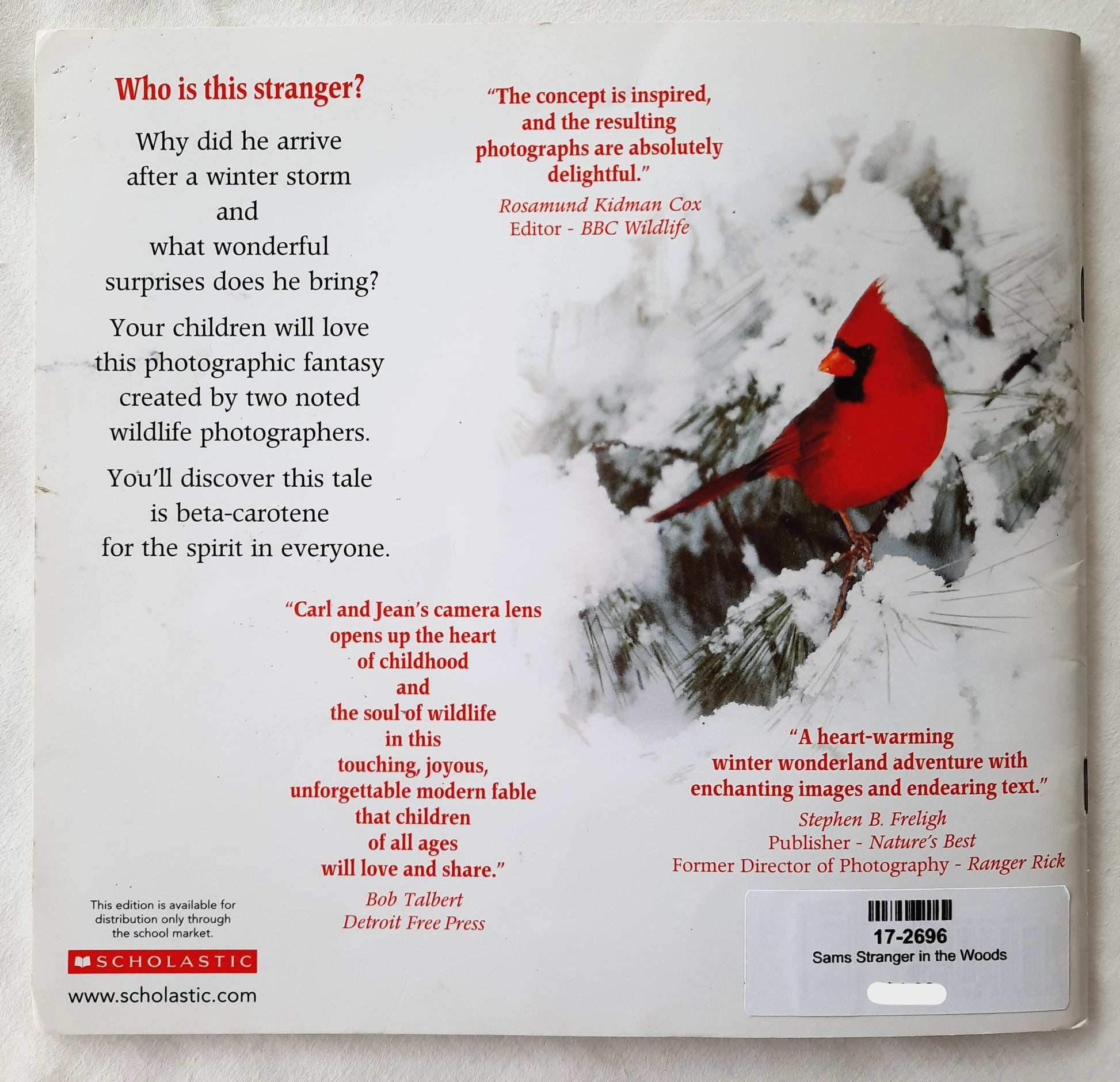 "Stranger in the Woods" is an enchanting photographic fantasy created by wildlife photographers Carl R. Sams II and Jean Stoick. Forest animals, awakened by the birds' warning that there is a stranger in the woods, set out to discover if there is danger and find, instead, a wonderful surprise. A little bit of magic emerges from a snowstorm and enters the woods.