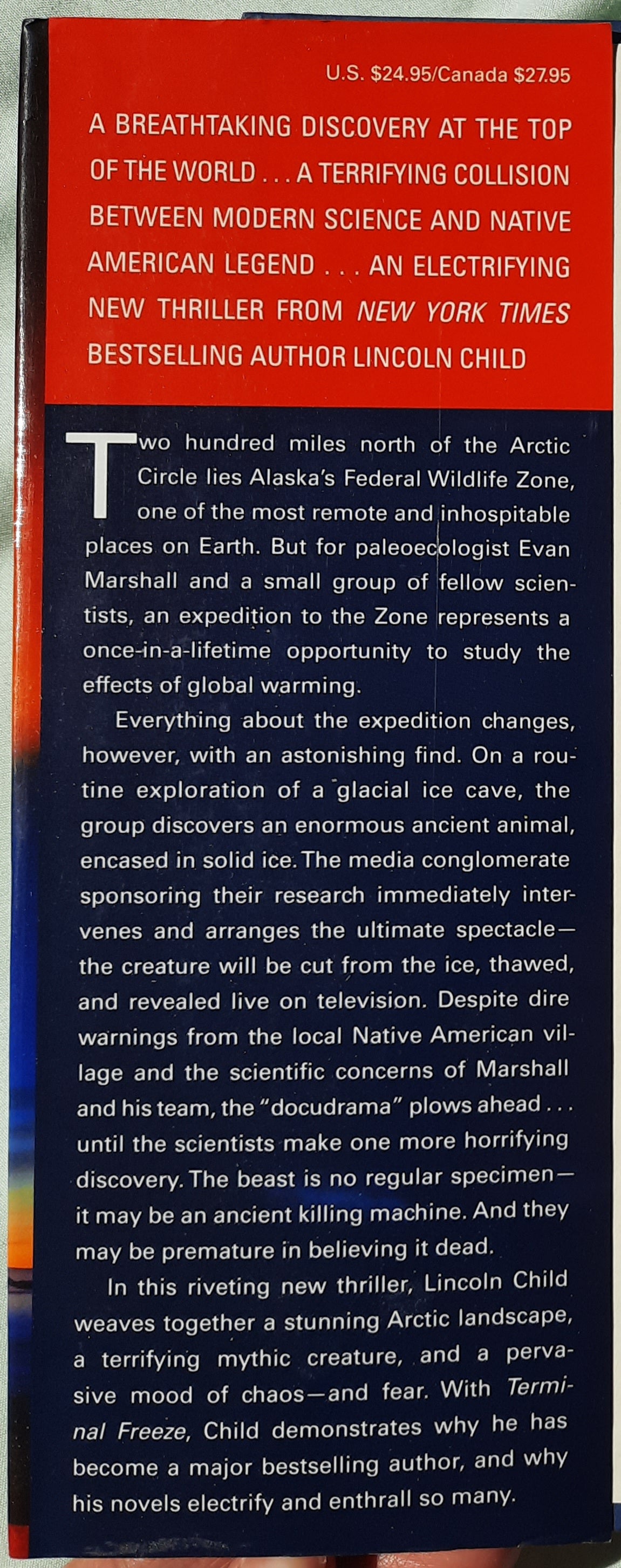 Alaska's Federal Wilderness Zone is one of the most dangerous and inhospitable places on Earth. For paleoecologist Evan Marshall, an expedition to the Zone offers an once-in-a-lifetime opportunity to study the mounting effects of climate change. But once there, Marshall and his intrepid team make an astonishing discovery: an enormous prehistoric animal encased in solid ice. Despite repeated warnings from the local village, and Marshall's own mounting concern, the expedition sponsors want the creature cut from the ice, thawed, and revealed on a live television spectacular…But then the creature disappears and an unspeakable horror is unleashed.