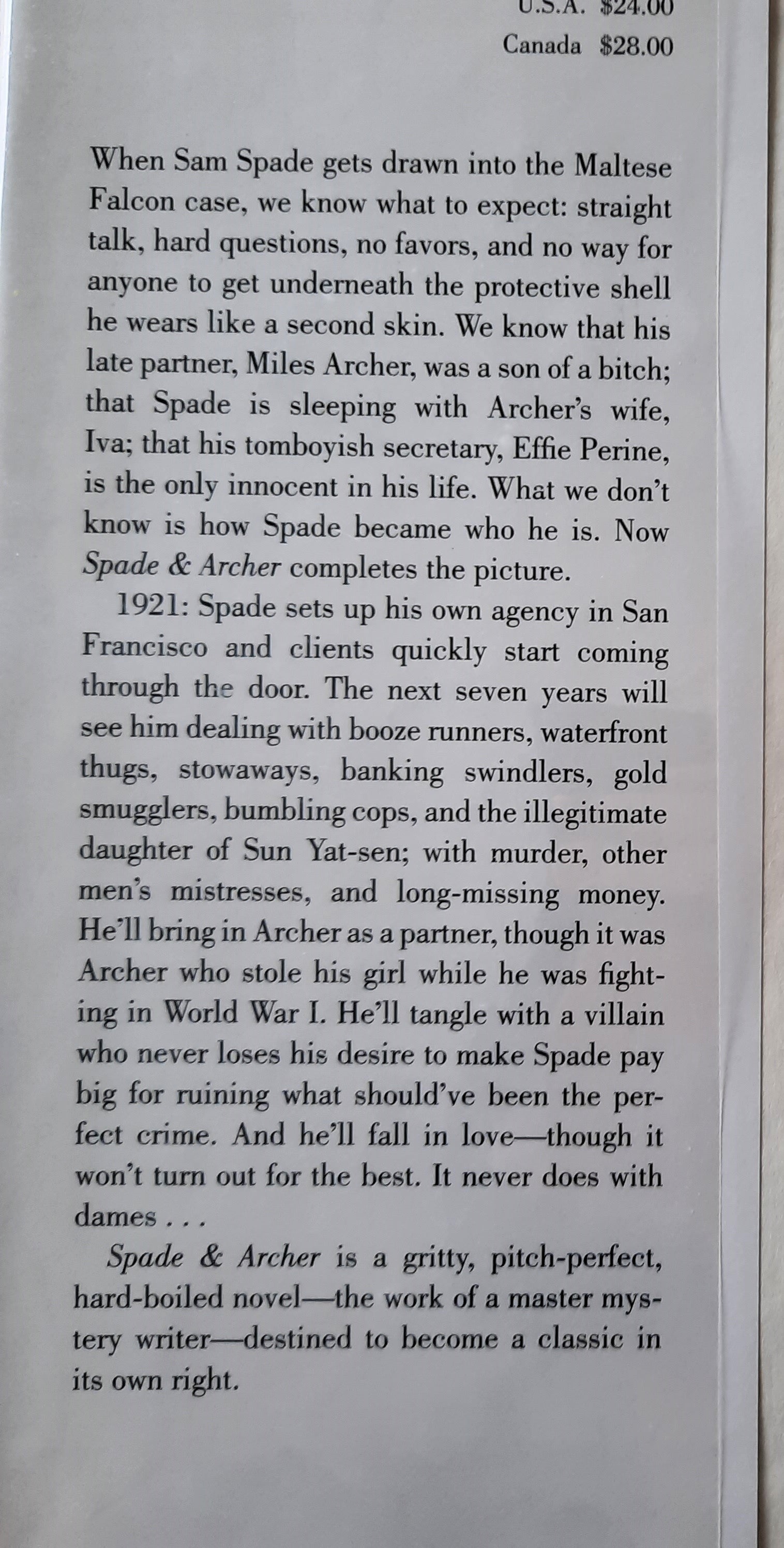 It’s 1921, seven years before Sam Spade will solve the famous case of the Maltese Falcon. He’s just set up his own agency in San Francisco and he gets off to a quick start, working cases (he doesn’t do domestic) and hiring a bright young secretary named Effie Perrine. When he’s hired by a prominent San Francisco banker to find his missing son, Spade gets the break he’s been looking for. He spends the next few years dealing with booze runners, waterfront thugs, banking swindlers, gold smugglers, and bumbling cops. He brings in Miles Archer as a partner to help bolster the agency, though it was Archer who stole his girl while he was fighting in World War I. All along, Spade will tangle with an enigmatic villain who holds a long-standing grudge against Spade. And, of course, he’ll fall in love - though it won’t turn out for the best. It never does with dames.