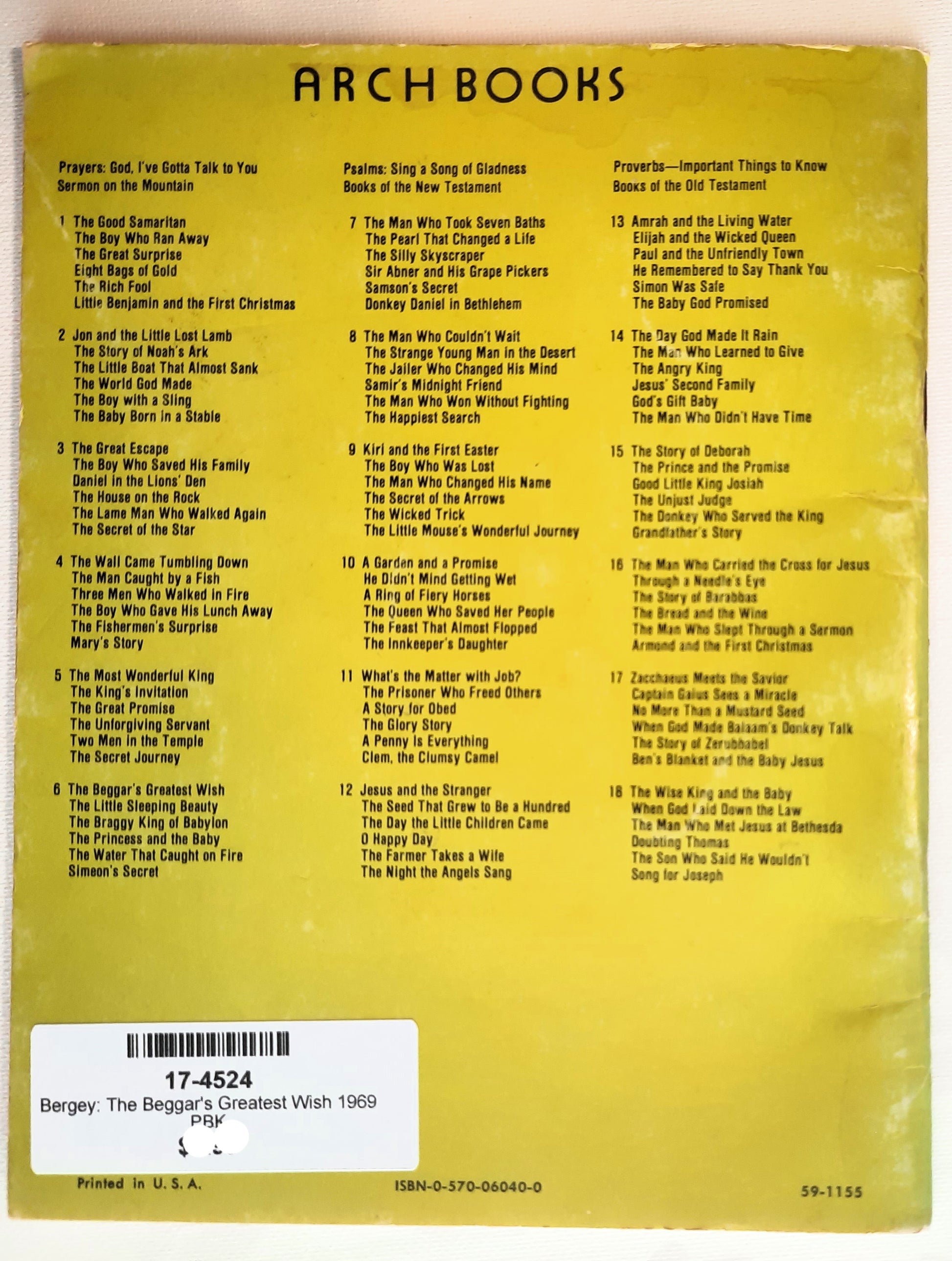 The Beggar's Greatest Wish by Alyce Bergey (Very good, 1969, Pbk, 32 pages, Arch Books)