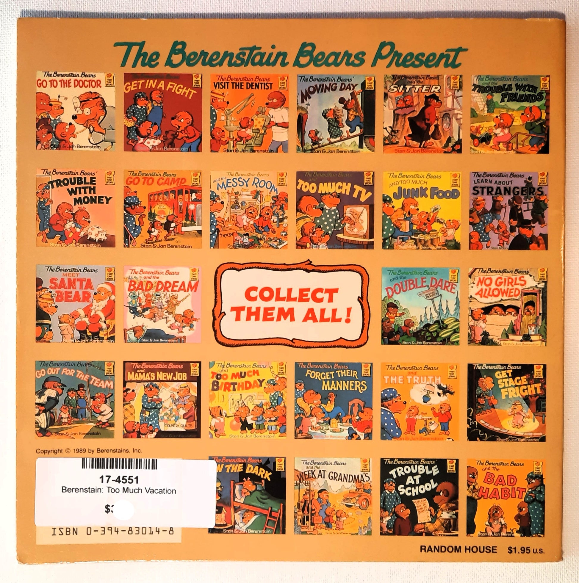 The Berenstain Bears and Too Much Vacation by Stan & Jan Berenstain (Very good, 1989, Pbk, 32 pages, Random House)