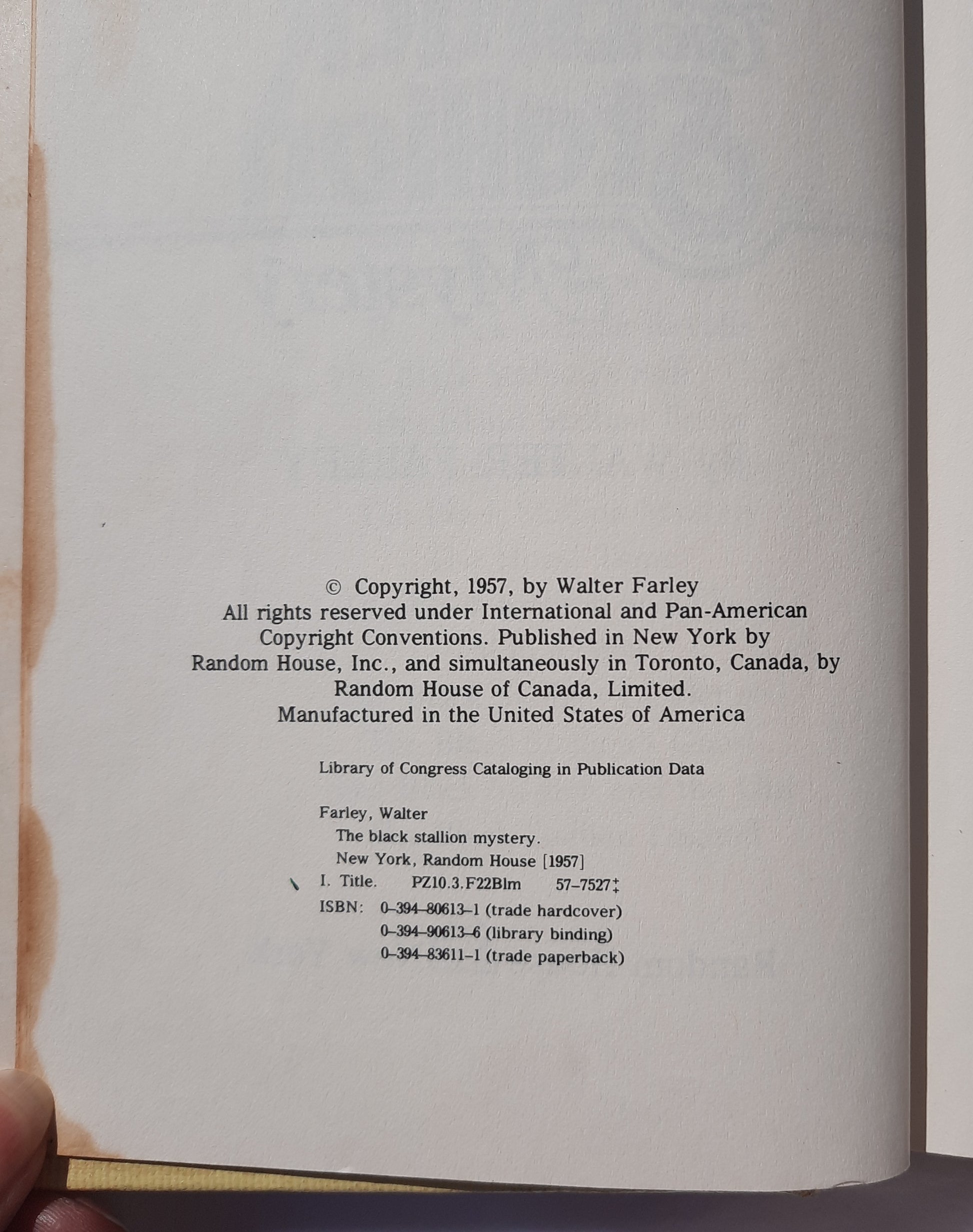 The Black Stallion Mystery by Walter Farley (Acceptable, 1957, HC, 199 pages, Random House)