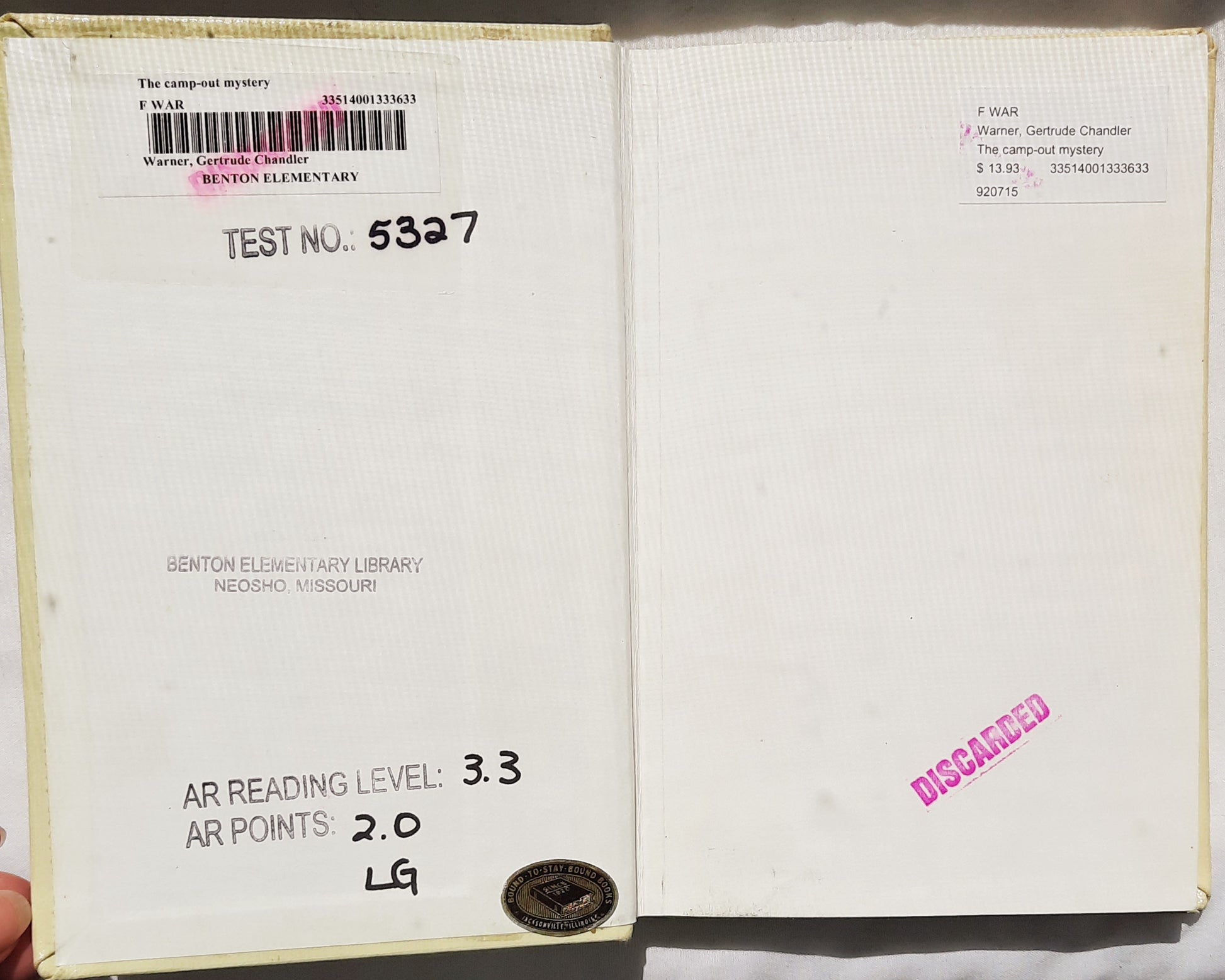 The Camp-Out Mystery by Gertrude Chandler Warner (The Boxcar Children, Good, 1992, HC, 120 pages, Albert Whitman & Co)