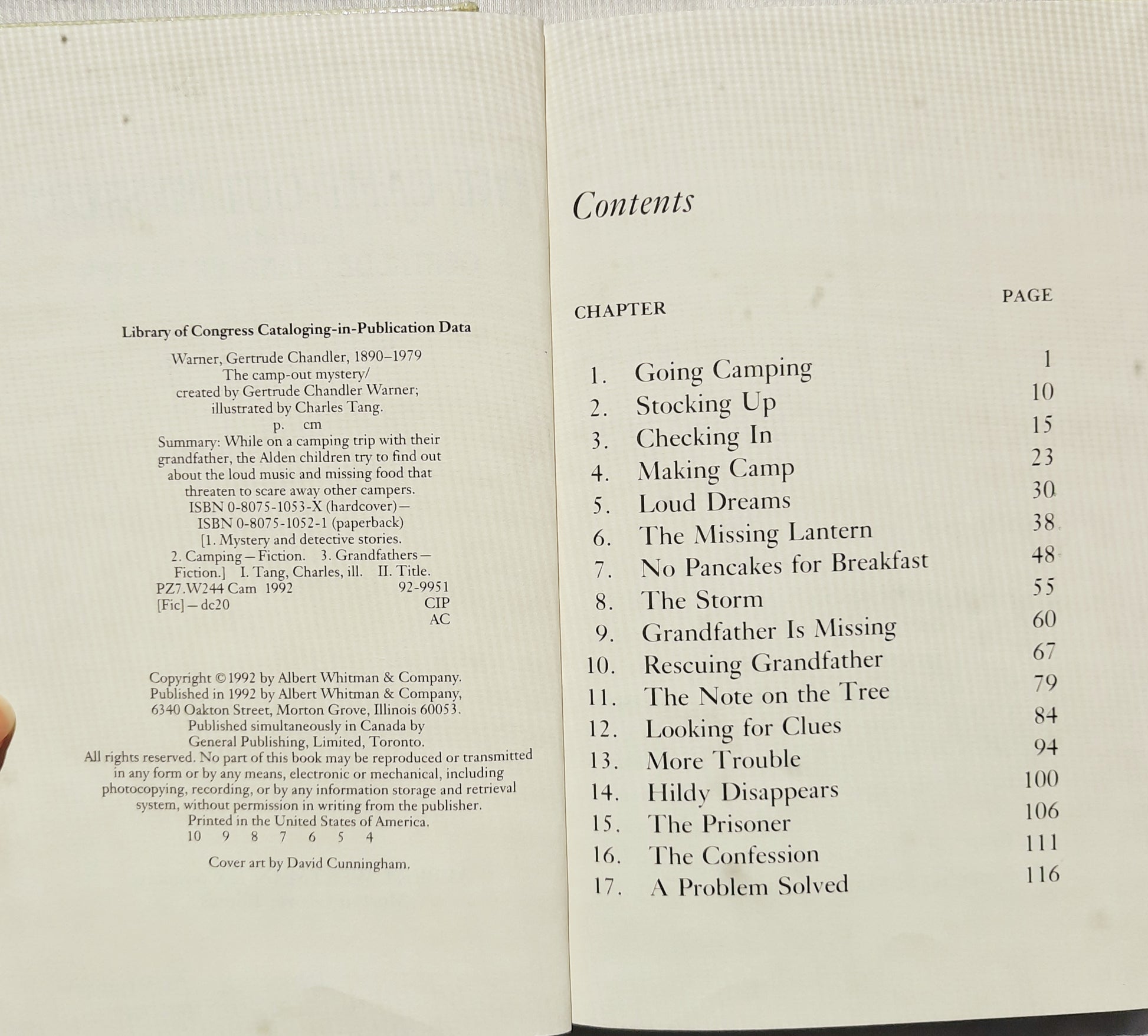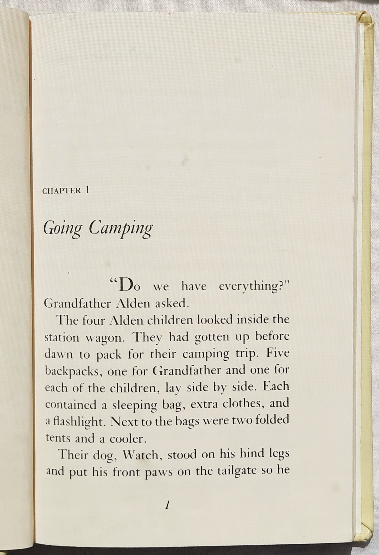 Grandfather is taking the Aldens on a camping trip. The children enjoy the camp-out - setting up the tent, hiking in the woods, and especially making delicious food over the campfire. But some strange things begin to happen. Loud music plays in the middle of the night. Their lantern disappears. And then they receive a frightening note. It looks like the Boxcar Children have another mystery to solve!