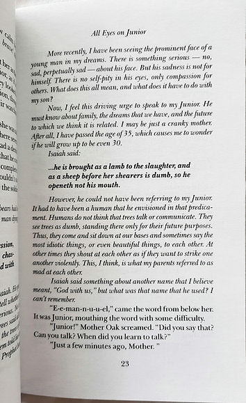 Junior, a great oak in the forest near Jerusalem, had a call on his life, a mission so divinely important to mankind that God Himself chose him for the task. But junior was a tree. It just so happens that when Junior was an acorn, he took root on the very same day that an angelic host came to herald the birth of an infant in the nearby town of Bethlehem.