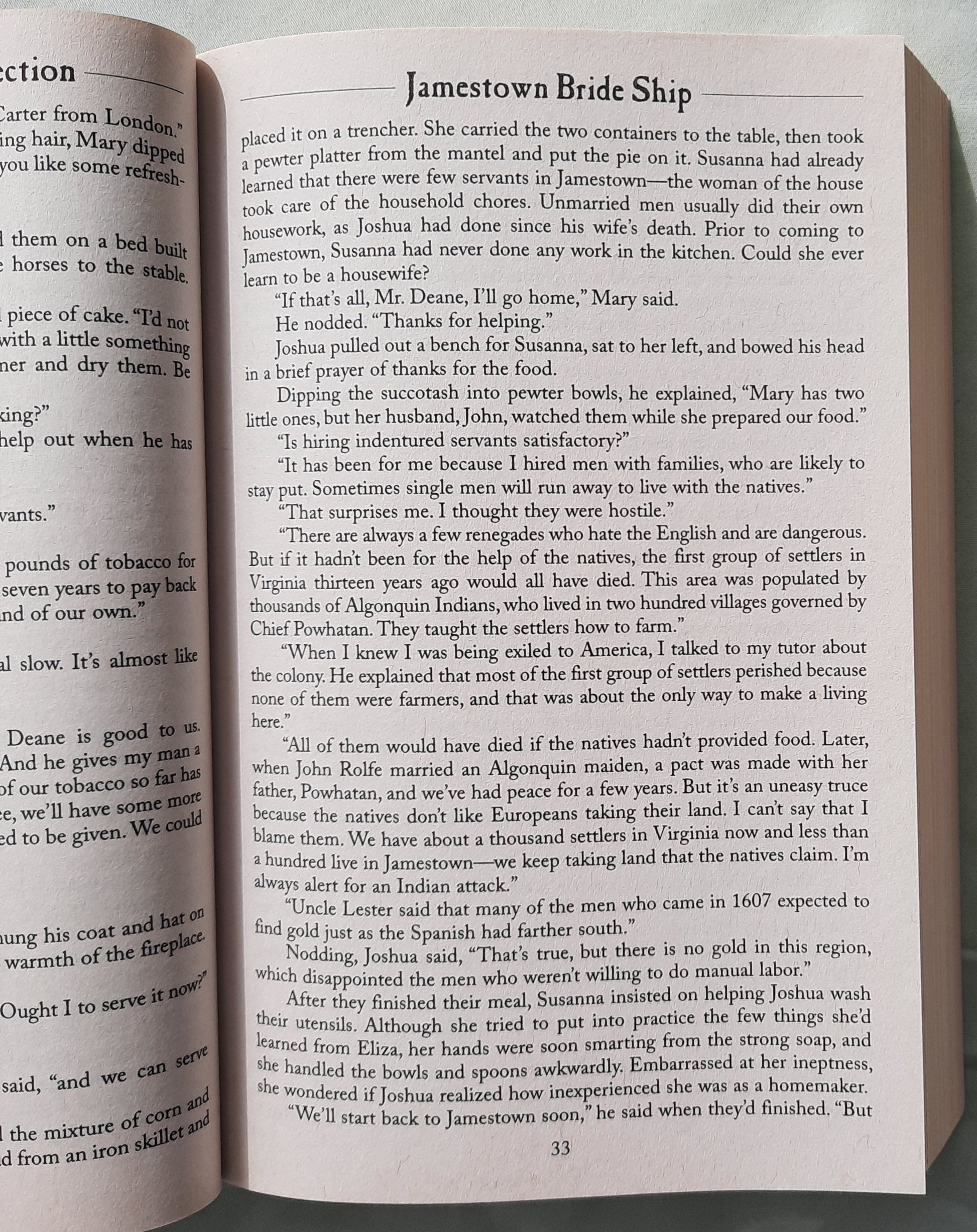Jamestown Bride Ship by Irene B. Brand - Susanna anticipates her arrival at the Jamestown Colony only because she intends to return to England on the very same ship. She would not be giving herself as bride to any of the hundreds of men eagerly awaiting on the riverbank. But when Susanna's gaze encounters the compassionate eyes of a man who lounges against the wall of the stockade, seemingly no part of the festival atmosphere, any thought of returning to England vanishes forever.
