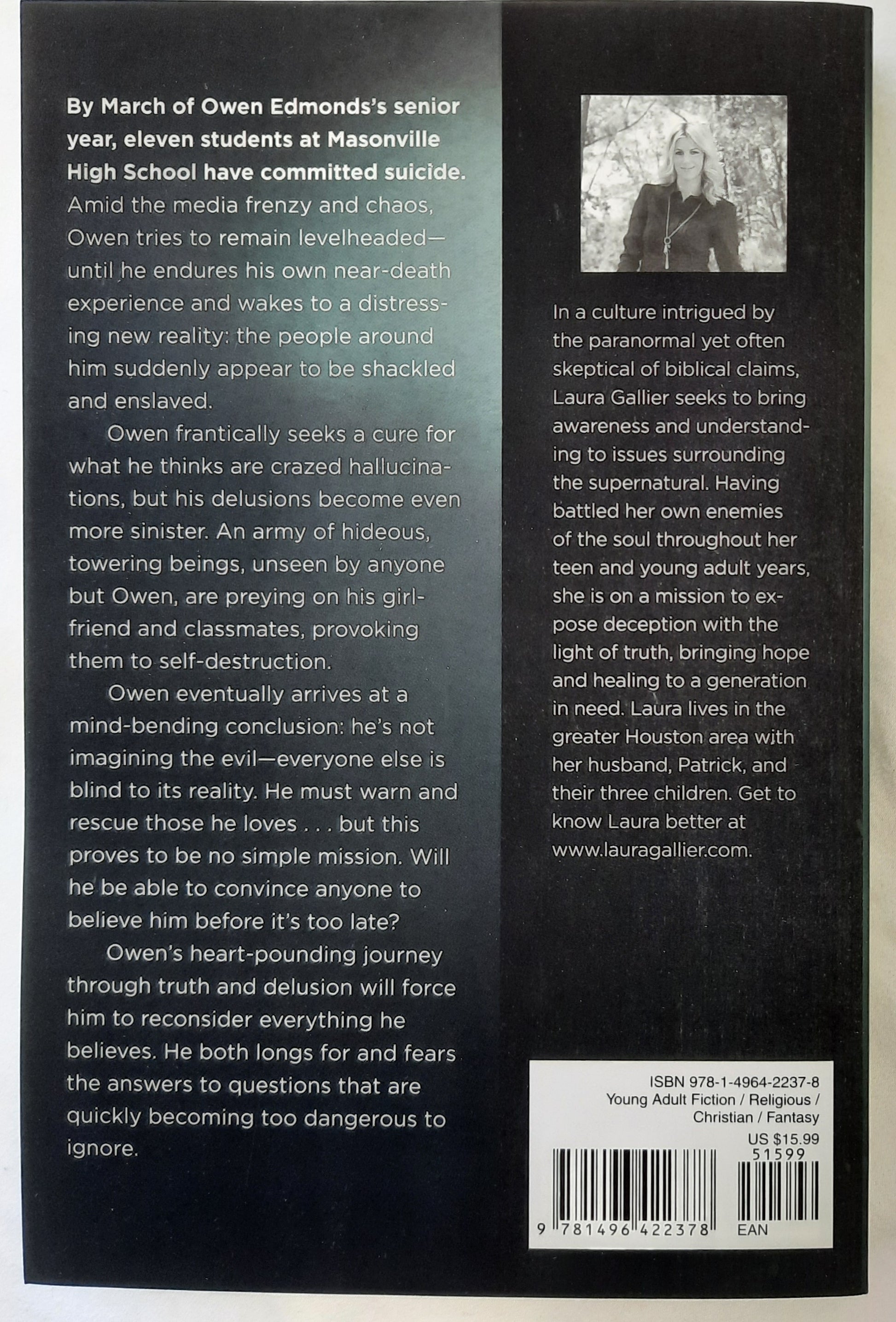 Owen eventually arrives at a mind-bending conclusion: he’s not imagining the evil―everyone else is blind to its reality. He must warn and rescue those he loves . . . but this proves to be no simple mission. Will he be able to convince anyone to believe him before it’s too late?